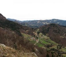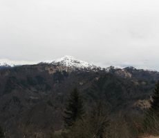 Označena strma pot nas je pripeljala do Hudičevega roba, pečine na vzhodnem robu Kojce. Po legendi naj bi tu neka baba prevarala samega hudiča, ki ji je hotel vzeti dušo. Odprl se je čudovit razgled proti jugu, saj sta burja in dež očistila ozračje. Nad Lipjem je pot zares strma, v 600 metrih zračne razdalje se dvigne za dobrih 250 metrov. Ob zadnjih ostankih snega smo z vrha uživali v pogledu na zasnežene Peči (zmotno znane kot Spodnje bohinjske gore) in Porezen, ter na vrhove Cerkljanskega in Idrijskega hribovja, v daljavi sta se iz megle dvigala Grmada in Tošč. Proti zahodu smo imeli kot na dlani v nadaljevanju Tolminskih gora Krnsko ploščo, Matajur, del Karnijskih alp in Dolomitov, pred njimi pa obris Tržaškega zaliva.