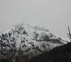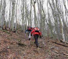 V ponedeljkovem jutru je močno nočno deževje počasi pojenjalo, ko je avtobus odpeljal skupino planincev skozi Škofjo Loko v Selško dolino. Za seboj smo pustili Železnike in Zali Log, se začeli dvigati proti Petrovem Brdu, razloženemu naselju med Baško grapo in Selško dolino, ki leži na razvodnem prevalu med rekama Sočo in Savo. Cesta se je nato ovinkasto spustila v Podbrdo, Hudajužno in Koritnico, kjer sta se nam pridružila Darinka in Ivan. Na Grahovem smo se pri spomeniku v spomin na snemanje prvega slovenskega filma »Na svoji zemlji« leta 1948, zazrli v hribe in zasnežene gore nad grapo. Z glavne ceste smo se po nekaj kilometrih vzpona zapeljali v hribovsko vas Bukovo, 20. kontrolne točke društvene obhodnice »Pot slovenskih legend«. Legenda pravi, da so nekoč hoteli Turki opleniti cerkev Sv. Lenarta, ki leži na obrobju vasi, vendar jim neka nepojmljiva sila tega ni dovolila. Cerkveni zvon se je milo oglasil, Turki so v tako imenovanem Žrelu obstali in niti koraka niso več zmogli navkreber. Zvon iz čistega srebra je davno tega v naročju prinesla neka lepa gospa, morda celo gorska vila. V predverju cerkve smo odtisnili žig PSL in se odpeljali proti vasici Orehek, izhodišču vzpona proti Kojci.