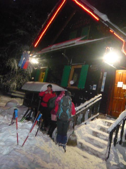 Hitro smo jo ubrali po najkrajši poti v Iztokovo kočo, kjer je bil drugi najlepši del našega pohodav prijetnem druženju ob dobrih domačih salamah in kuhanem čaji in vinu. Nismo imeli prav veliko česa za druženje, ker je ura kar ustrajno hitro tekla, smo se morali kaj kmalu odpraviti v dolino in potem proti domu.