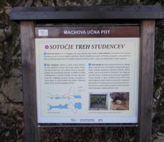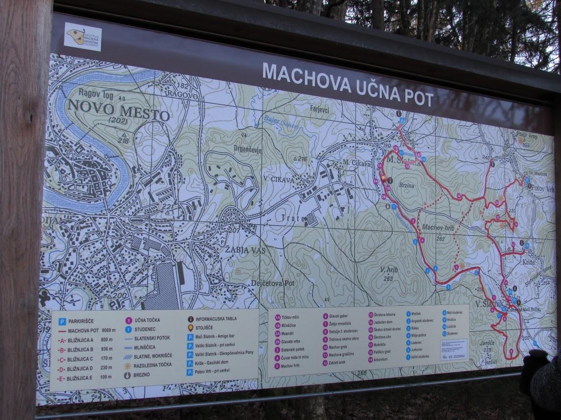 Urejena pohodna pot ob kateri so številne table, ki opozarjajo na znamenitosti ob slatenskem potoku na njegove meandre ter druge znamenitosti kot je skalni čuvar in miru, je lepo speljana skozi in ob gozdu ter njivah in pašnikih. Enostavno je premalo prostora na eni strani lista, da bi jih vse povzemal in opisoval. Obiščite pot in se sami prepričajte! Toda mogoče ne boste imeli srečo, kot smo jo mi imeli. Aničin soprog Jože nas je na polovici poti presenetil s stojnico, na kateri je bilo od prigrizka do tople osvežitve. Tudi razkužilo, preventivno seveda, se je našlo. Po kratkem postanku in ogledu jasli, ki so še bilo postavljene iz prelepih umetelno izrezljanih lesenih figur v naravni velikosti, smo se napotili do mesta, kjer je nekoč stala domačija družine Mach. Ustavili smo se še pri cerkvi Žalostne mater božje ob kateri je lično urjen grob Ernsta Macha. Anica je na obeh mestih znova povedal številne zanimivosti iz življenja članov in članic družine Mach.