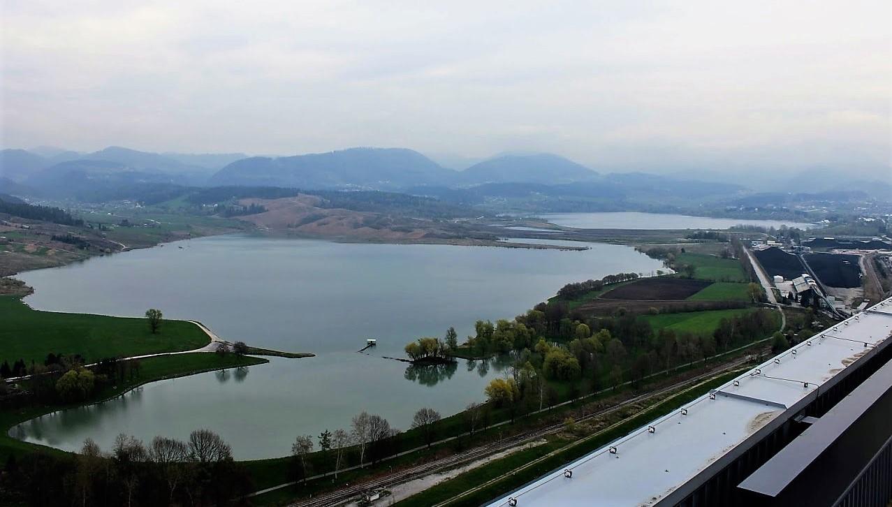 Okrog poldneva se je skupina podala proti vsem trem Šaleškim jezerom, ki so vsa posledica 130 letnega izkopavanja lignita v dolini. Najprej smo se podali proti najglobljemu DRUŽMIRSKEM JEZERU, nedaleč od TEŠ 6, ki se je sredi istoimenskega polja pojavilo okoli leta 1975, leta 2005 pa je obsegalo več kot 63 ha in vsebovalo skoraj 15,3 milijona m3 vode. Poleg padavin je pritok Velunja njegov edini vir vode. Po načrtih Premogovnika Velenje naj bi leta 2020 to jezero obsegalo kar 170 ha in tako postalo po površini in količini vode največje jezero v Šaleški dolini. Ko smo prehodili desni breg in blatno pot ob še ne povsem urejeni obali tega jezera, je sledila hoja po poteh ob mnogo bolj urejenem in turistično zanimivem VELENJSKEM JEZERU, ki sodi med večja jezera v Sloveniji. Jezero je dolgo 1.4 km in široko 1.2 km, globine približno 54 m, kar je mnogo več od naših jezer na Gorenjskem tudi po površini in količini vode. Vse je nedvomno najbolj navdušila hoja po lepo urejenih poteh in razgledih mimo ŠKALSKEGA JEZERA, ki je prvo nastalo in se začelo oblikovati že pred drugo svetovno vojno, v času manj intenzivnega obdobja premogovništva v Šaleški dolini. Leži v porečju Lepena, pojezerje meri dobrih 10 km2 in je povečini gozdnato, najmanjše med tremi jezeri. Z avtobusom, ki je bil parkiran v bližini navedenega jezera smo se mimo prijetnega zaselka ŠKALE, odpeljali do zanimive gorske vasice PLEŠIVICA in se za nekaj časa ustavili na turistični kmetiji Volk. Ko smo nadaljevali pot proti GRAŠKI GORI, da bi si ogledali spominsko obeležje hudih bitk XIV. divizije pozimi leta 1944, se je vreme spet poslabšalo. Hvaležni domačinu, ki nam je obudil spomine na celotno prehojeno pot in bitke te slavne partizanske divizije, smo se njemu in našemu vodniku Borisu iskreno zahvalili za vse doživeto ta dan in se z novimi vtisi, spomini in utrujeni vrnili v Ljubljano.