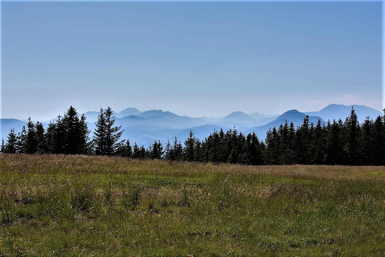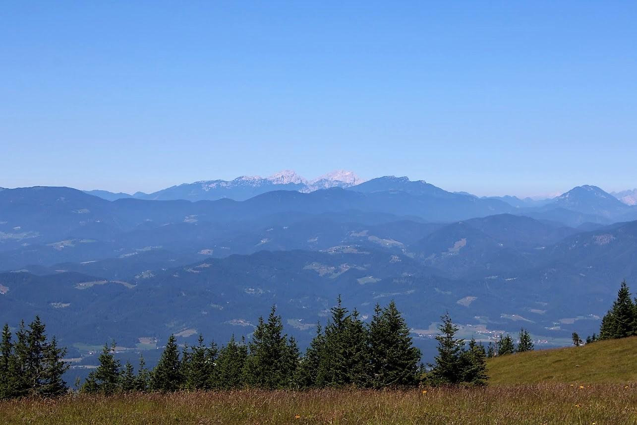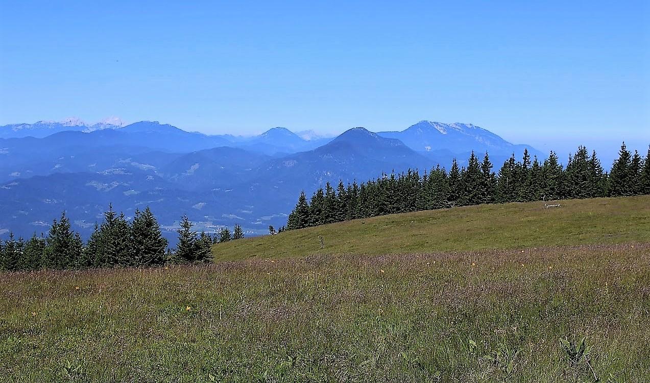 Redko imamo na izletih srečo,da so mogoči razgledi na vse strani neba.Tokrat smo takoj po prvih vzponih občudovali prelestne višave Kamniško-Savinjskih Alp,Raduhe,Olševe,Uršlje gore,Pece in pogorja nad Dravo ,Kozjak,na drugi strani.Tudi avstrijski vrhovi,ki smo jih že prehodili in nas še vedno mikajo,so bili jasno vidni v daljavah.