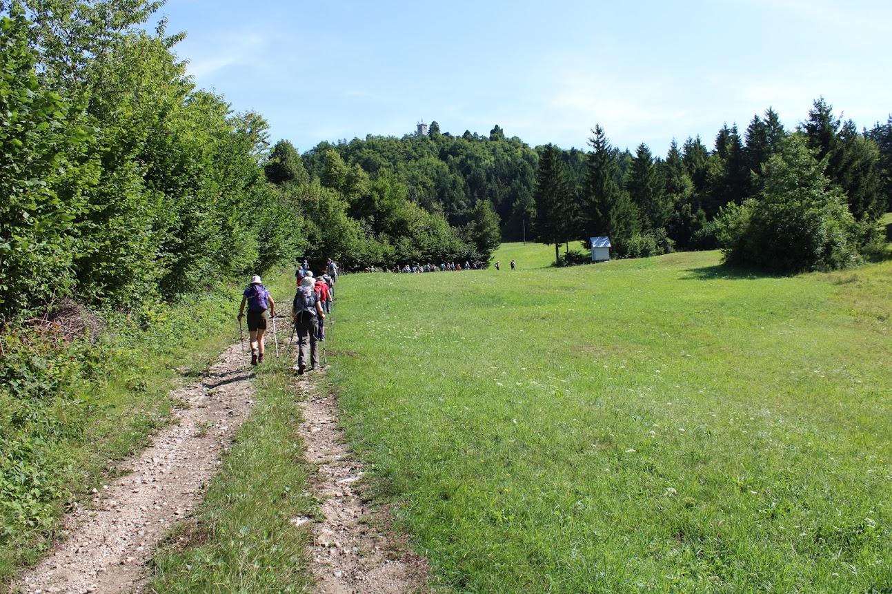 V nedeljo, 4. Avgusta 2019, smo se odpravili na območja južno od Ljubljanske kotline, na območja NOTRANJSKEGA KRASA, ki je del slovenskega klasičnega krasa. Posebnega pomena so kraška polja s ponikalnicami, značilni so obsežni skalnati gozdovi, vrtače, udorne koliševke, slepe doline in doli, ponori, jame in brezna. 31 udeležencev izleta si je šlo ogledat svet izrazitih kraški značilnosti. Po primorski avtocesti smo se zjutraj odpeljali do Unca, od tod pa mimo Rakeka, Cerknice, Grahovega in vasice Žerovnica do TEKAVČE OGRADE, kjer smo si privoščili krajši postanek za jutranjo kavo. To nam je zagotovil mag. Dušan KAPLAN, skorajda domačin iz Bloške planote in zelo dober poznavalec ne samo Loške doline, ampak celotnega bloškega območja, avtor znane Poti Martina Krpana, ki smo jo pred leti prehodili člani našega PD. Pridružil se nam je na AP Grahovo in nas spremljal na vzponu do Križne gore in spustu do Križne jame in se ves čas trudil, da nam je povedal mnogo zgodovinskih dejstev in pomembnih dogodkov. Tudi iz krutih časov med NOV, ki je ljudi Loške doline in Blok kruto prizadela. Kot cenjen domačin nam je zagotovil, da smo bili lepo sprejeti tudi v Gostišču (Brunarici) na območju BLOŠKEGA JEZERA, prijazno postreženi z okusno malico, ko smo proti popoldnevu zaključili z vzponi in spusti ter lepimi razgledi po planotah in gorah tako notranjskega krasa kot tudi do številnih gora in vrhov čez hrvaško mejo. Ker ima v srcu Notranjcev posebno mesto grad ŠTEBERK, smo si potem, ko smo se seznanili z legendo o nastanku Cerkniškega jezera in o številnih lastnikih mogočnega gradu, prvič omenjenega leta 1274, ogledali njegove še vedno mogočne ostanke, ki jih ni povsem uničil katastrofalni potres leta 1511, niti čas po njem vse do danes. Za vzpon po nemarkirani gozdni poti vse do vasice Sv. Ane, smo hodili več kot pol ure, nato pa še nekaj več kot toliko do KRIŽNE GORE (857 m), do prazgodovinskega gradišča in antične naselbine z utrdbo, in sicer po kamniti poti, mimo vseh božjepotnih kapelic. Po polurnem počitku in času za razglede v sončnem, jasnem vremenu, smo se spustili do najlepše vodne jame na svetu, do KRIŽNE JAME, kjer so nas pred vhodom primerno opremili z obutvijo in raznimi svetilkami. Dva vodnika sta nas odpeljala v dogovorjene predele jamskega sistema, nam razkazala vse znamenitosti (tudi ostanke kosti jamskega medveda) in popeljala s čolnom po jezeru do območja, od koder smo se morali vrniti, ker smo bili dogovorjeni samo za uro in pol gibanja po jami. Od tu smo se mimo Bloške police in Nove vasi odpeljali do Bloškega jezera. Po dveh urah počitka, kopanja in sprehoda pa odpeljali še do RAKITNE, zanimive turistične gozdnate kraške planote z jezerom na nadmorski višini okrog 800 m, od koder smo se, po krajšem postanku in sprehodu ob hotelu in jezeru, vrnili v Ljubljano.