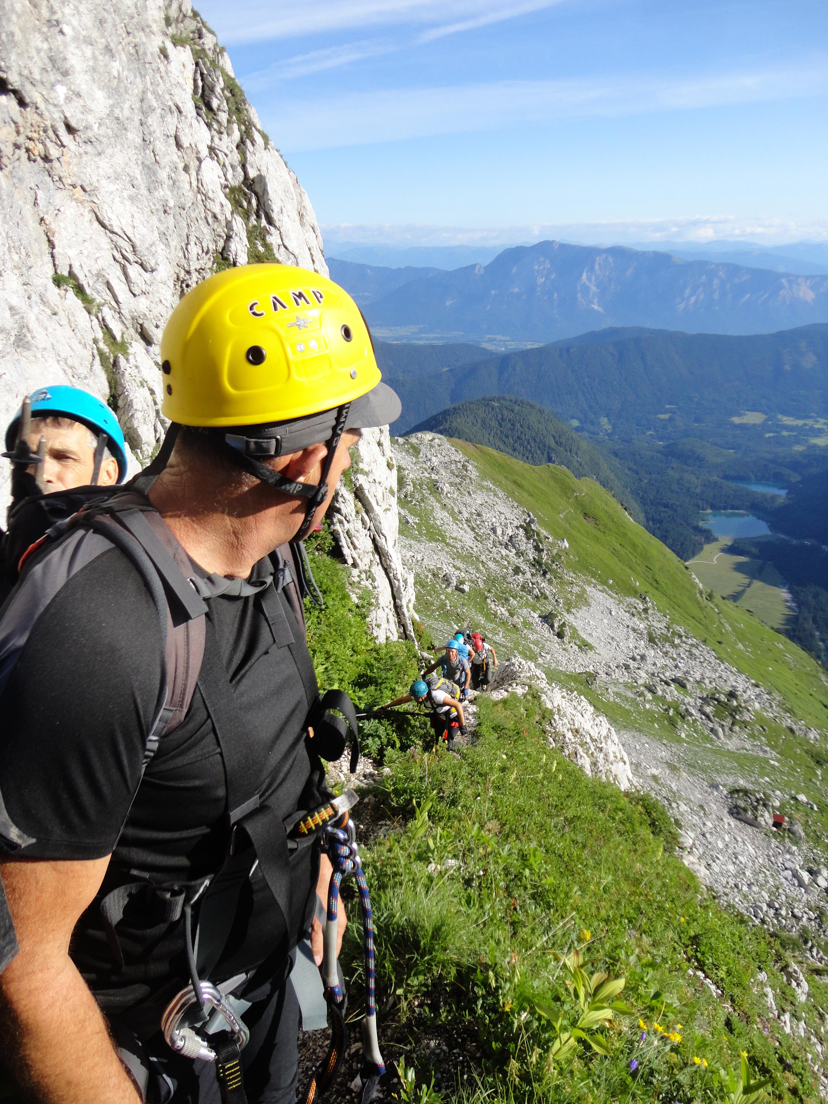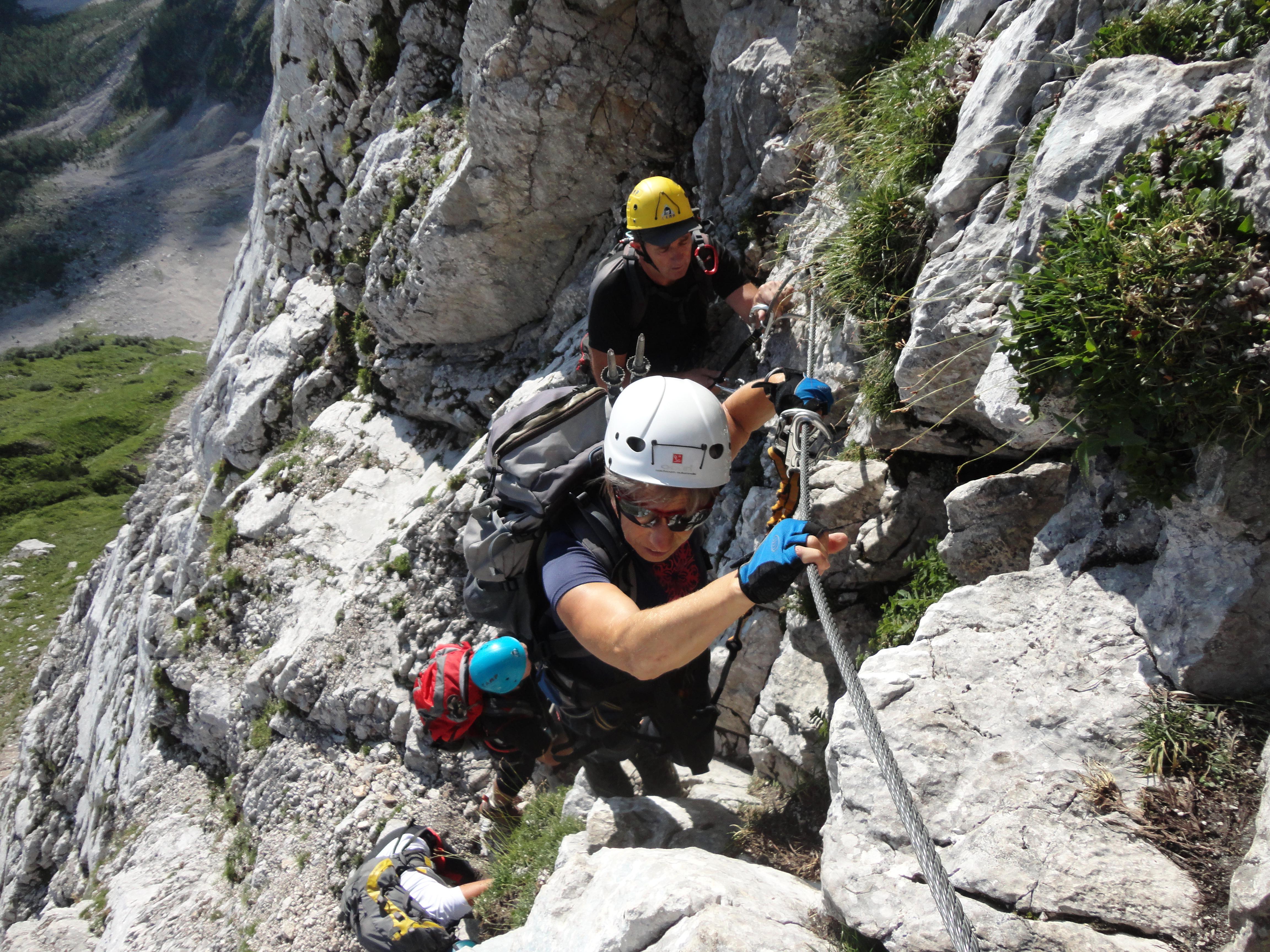 V soboto popoldne, mi je Leon sporočil, da se njemu nihče ni prijavil in da zato on, kot vodnik ne gre. Tako se nas je 12 zbralo. 10, sami člani smo šli najpej iz sedla v dolino, do bivaka Nogara in nato po zelo izpostavljeni in zahtevni ferati po Via italiana na sedlo in dalje po Slovenski poti gor in po Italijanksi poti dol. Kot vedno smo bili usklajeni, hitri in zadovolji.