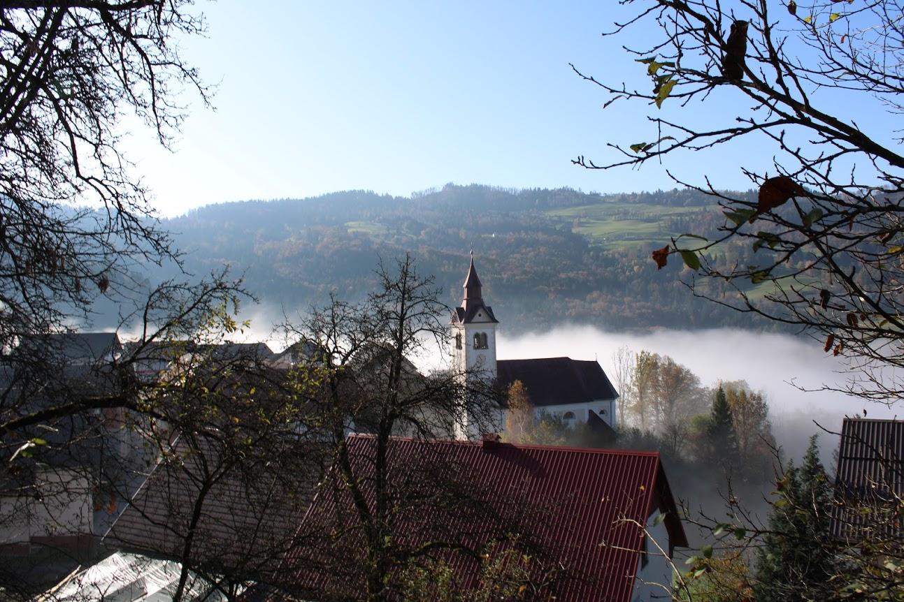 V hladnem nedeljskem jutru, konec oktobra, smo se zbrali v Cerknem, kje smo si pred odhodom na pot privoščili jutranjo kavo. Cerkljanska kotlina je bila prekrita z jutranjo meglo, nad njo pa nas je čakal lep sončen dan.