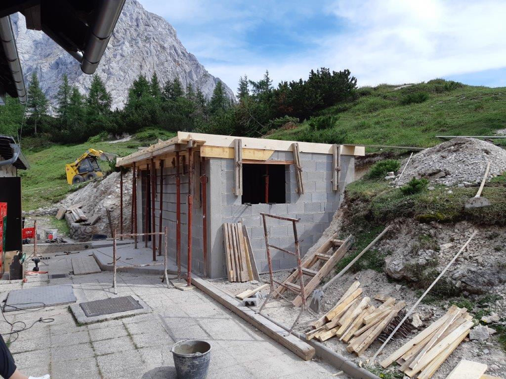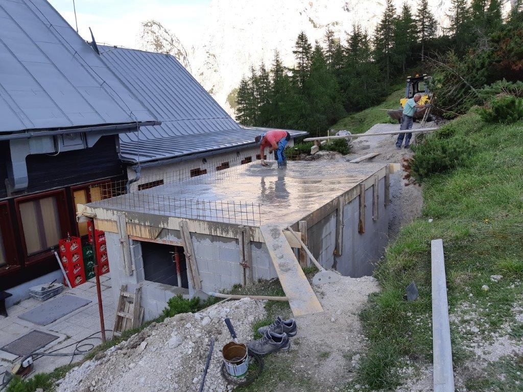V letošnjem letu smo pridobili pomemben objekt za skladiščenje hrane in pijače. Postavljen je v brežino na južni strani za Poštarskim domom, deloma zasut in pokrit z zemljo in je minimalno opazen. Vrata so nasproti vhoda v priročno skladišče pijač v domu tako, da je transportna pot izredno kratka.