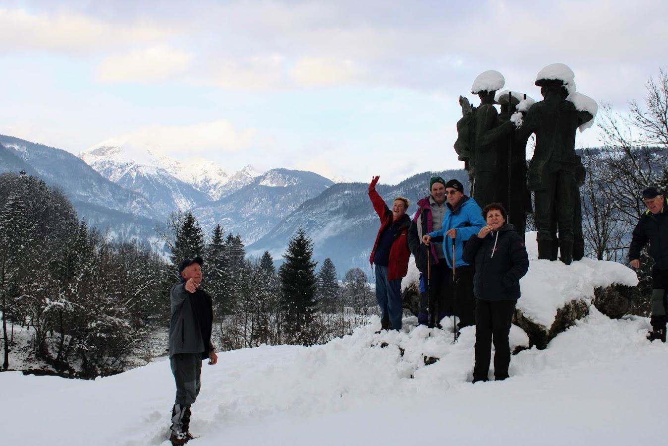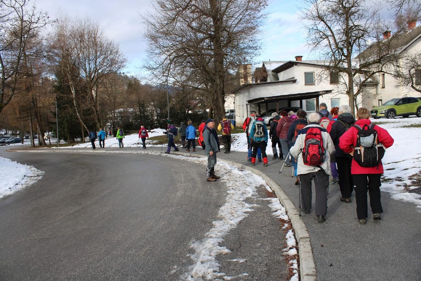 Zaradi megle in poledenelega cestišča sta se vodiča s posvetom ostalih odločila, da se z avtobusom vrnemo na Bled, kjer je bilo lepše vreme in boljši pogoji za hojo. Vsi smo to odločitev z navdušenjem sprejeli.