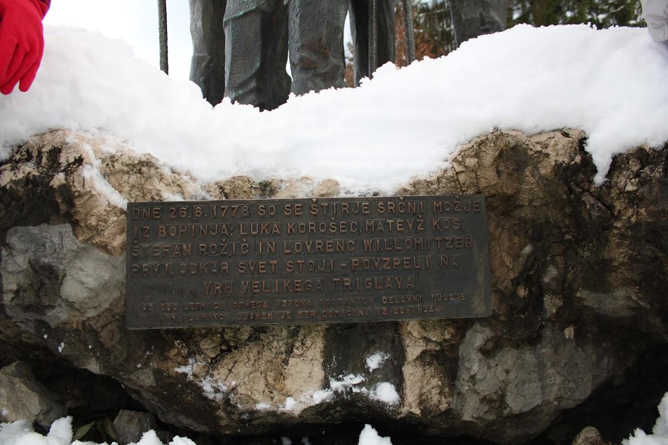 Kosilo je bilo rezervirano v Bohinju, zato smo se vrnili v Bohinj. Po dobrem kosilu smo zavili še v Ribčev laz na ogled spomenika štirim zaslužnim za ta kraj, ki so prvi osvojili vzpon na Triglav.