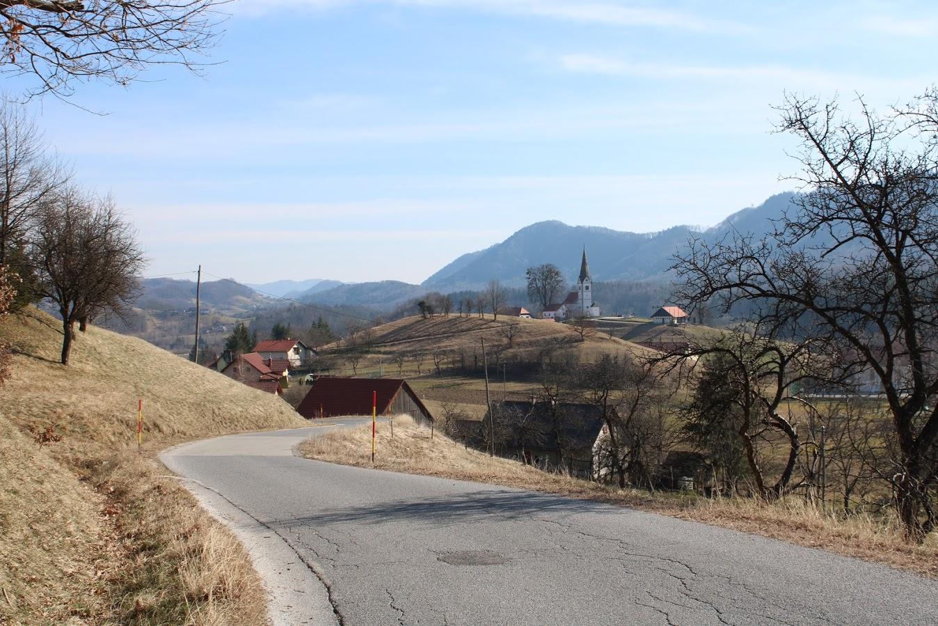 Po nekaj minutah smo bili v Pridni vasi. Pokrajina okrog nas je bila na pogled prijetno valovita. Vsa zaspana se je na vse strani širila v daljavo. Tu in tam smo videli cele šopke kronc in trobentic, ki so svojo belo in rumeno barvo še kako izstopale iz neizrazite zeleno-rjavkaste barve, ki je prevladovala vse naokoli. Pot je vijugala, se dvigala in spuščala. Med hojo smo dobili občutek, da stopamo iz ene doline v drugo. Hiše so bile raztresene kot jata plahih jerebic. Prijetno presenečenje je bilo, ko smo v eni od dolin zagledali tri s slamo prekrite hiše. Takih ni več veliko. Škoda, da so bili predaleč, da bi si jih lahko od bližje pogledali. Smo pa zato ob cesti lahko videli veliko novih ali obnovljenih hiš.