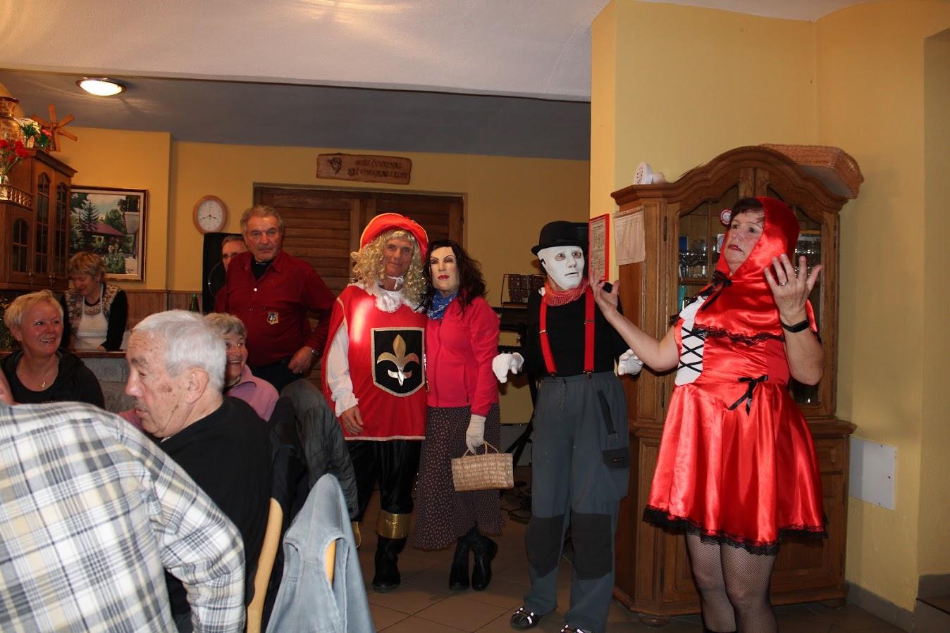 Darinka, lastnica Izletniške kmetije v Kočicah, nas je prijazno sprejela. Pričakala nas je bogata pojedina. Večina udeležencev izleta se je po kosilu preoblekla v pustne šeme in tako se je rajanje nadaljevalo v maskah. Komisija je imela kar nekaj dela saj je bilo maškar veliko. Za vsako se je našlo priložnostno darilo. Tako smo rajali še kakšno uro in pol.