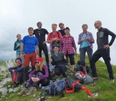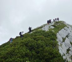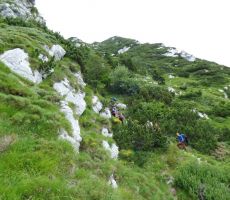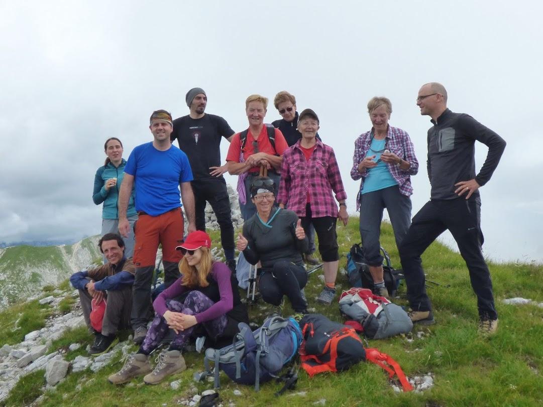 Nedelja, 19.07.2020 – ŽABNIŠKI KUK (1.844 m) V nedeljo nas je vodnik Planinskega društva Pošte in Telekoma Ljubljana odpeljal na planinski izlet na primorski konec, v tolminske hribe. Tisti konci so strašno lepi, pa takorekoč bogu za hrbtom, vozili smo se skoraj tri ure. Peljali smo se z osebnimi avtomobili preko Idrije do Mosta na Soči, od tam pa mimo planine Stador do planine Lom in naprej do planšarije na planini Kuk, našega izhodišča. Pot na Žabniški (tudi Žabijski ali Žabiški) Kuk (1.844m) smo začeli po cesti proti planini Razor, pa kmalu zavili strmo v hrib, na staro vojaško pot, ki preko travnika najprej zavije v gozd, potem pa se med rušjem postavi naravnost navzgor. Dobesedno grizli smo kolena, pot je dokaj zahtevna, nevarna za zdrs, vendar pa s prekrasnimi razgledi na Kobiljo glavo, Kojco, Porezen, Rodico, više gori pa na Tolminski Migovec, Vrh nad Peski, Krn, Rdeči rob in celo verigo Spodnjih bohinjskih gora. Malo pod vrhom nas je začela strašiti megla, vendar smo vrh osvojili, pa ne le tega, nadaljevali smo še na Vogel (1.923m) in preko bližnjega sedla sestopili na planino Razor. Kljub napovedi popoldanskih neviht se je pohod srečno končal z le dvema dežnima kapljama na nosu. Po pavzi za okrepčilo na planini je bil čas za povratek do avtomobilov, saj smo imeli še dolgo pot do doma. Mimogrede smo se na planšariji založili še s sirom in skuto. Izlet je odlično izpeljal vodnik Gregor Česnik, poskrbel je za varnost na poti in za primeren tempo, saj so bile med nami tudi planinke, stare več kot 80 let.