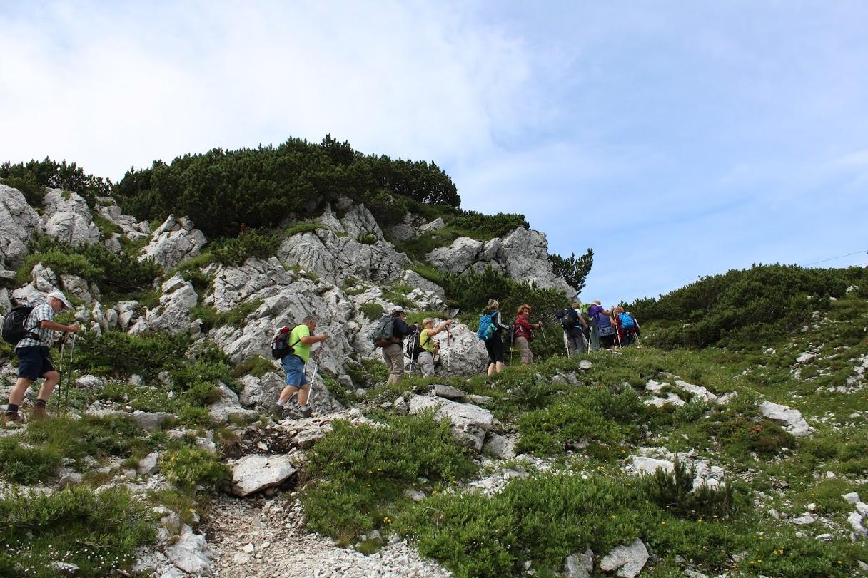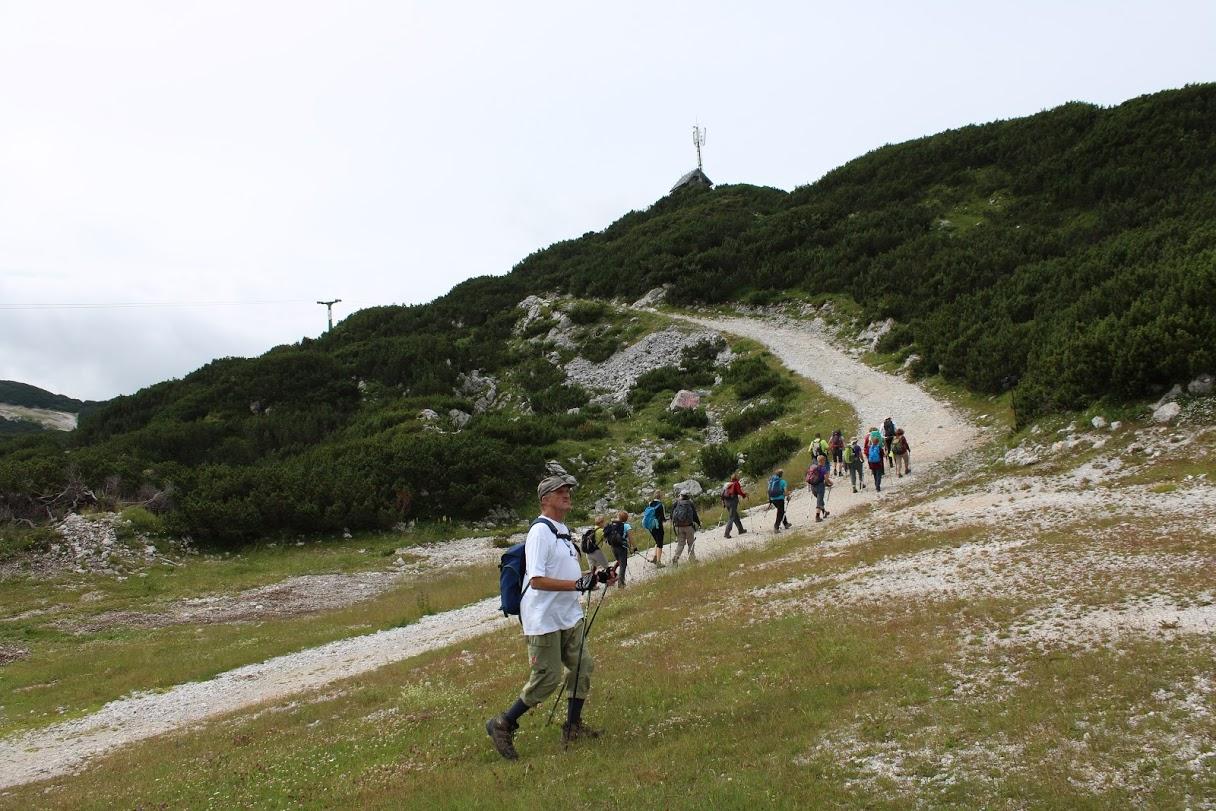 V nedeljo nas je Gregor Česnik, vodnik Planinskega društva Pošte in Telekoma Ljubljana odpeljal v bohinjski kot, mimo Bohinjskega jezera do Ukanca. Vkrcali smo se v gondolo, ki nas je potegnila na Rjavo skalo do Ski hotela na Voglu (1.540 m), tam smo na hitro posrkali jutranje kavice in že smo korakali čez smučišča, v tem času brez snega. Malo po širokih servisnih poteh, malo po travnatih površinah, za nami pa ves čas prelep pogled na očaka Triglava in njegove mogočne sosede. Mimo Prvega Vogla in Križa (1.620 m) smo v dokaj zmernih vzponih zaobšli še Orlovo glavo (1.682 m), tu je bilo lepe poti konec. Naprej smo vijugali med ruševjem in skalovjem, vmes občudovali gorsko cvetje, veliko je bilo planik, prečili zanimivo smučišče, nasuto z nasekanimi ostanki rušja, in si malo oddahnili na zgornji postaji enosedežnice Šija. Sledil je še zadnji, malo bolj strm vzpon do vrha Šije, na rebri smo pozdravili čredo pasočih se koz. Pokukali smo preko prepadnega roba na primorski konec, od koder se je iz Kneških Raven navzgor valila megla. Pot smo nadaljevali v smeri Komne, pa kmalu obrnili in se po eni od mnogih poti vrnili na pot pristopa. Naredili smo ovinek čez Dolgo Planjo, kjer je arheološko najdišče z ostanki visokogorske postojanke rudarjev in pastirjev. Z nihalko nazaj v dolino, pa z avtobusom domov. Malo krajši, a lep izlet.