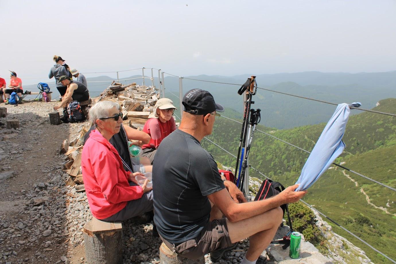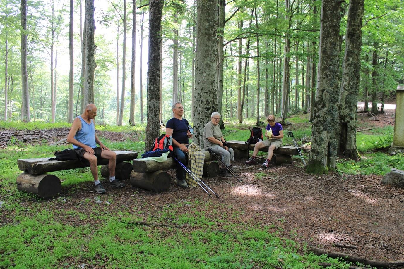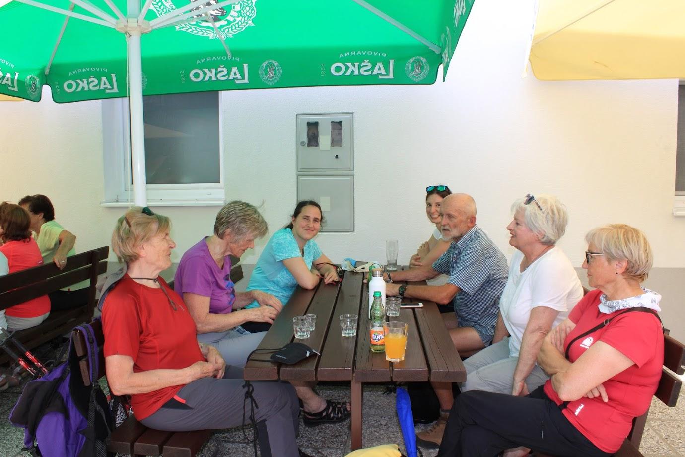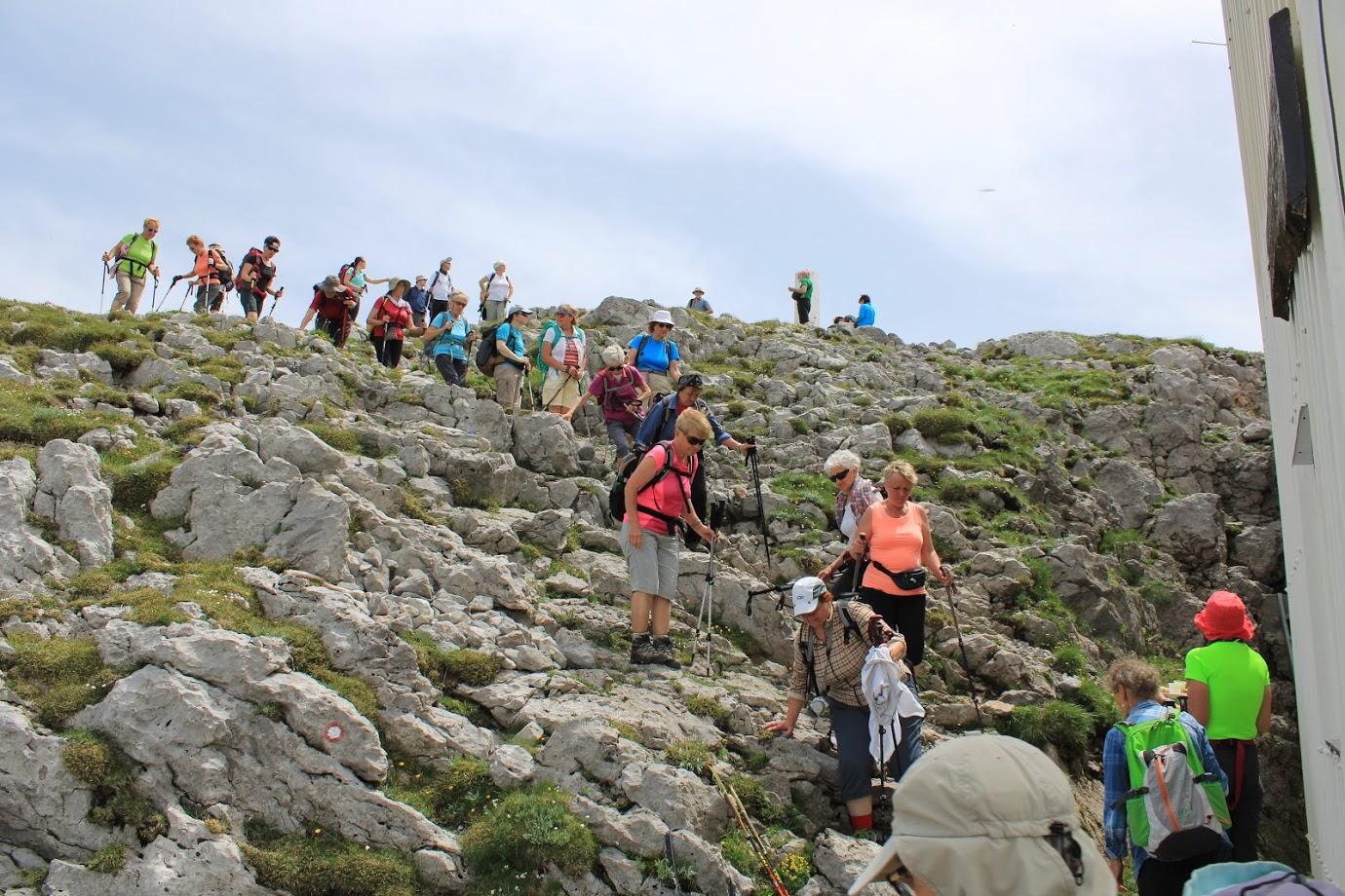 Sestop z vrha je bil kar strm, med skalami in čudovitimi škrapljami smo se spustili na gozdno stezo, ki se je nato priključila gozdni cesti, kjer smo srečali naše planince sprehajalce. Skupaj smo se odpravili do planinskega doma na Sviščakih, kjer nas je čakala odlična jota s sladico in seveda osvežitev.