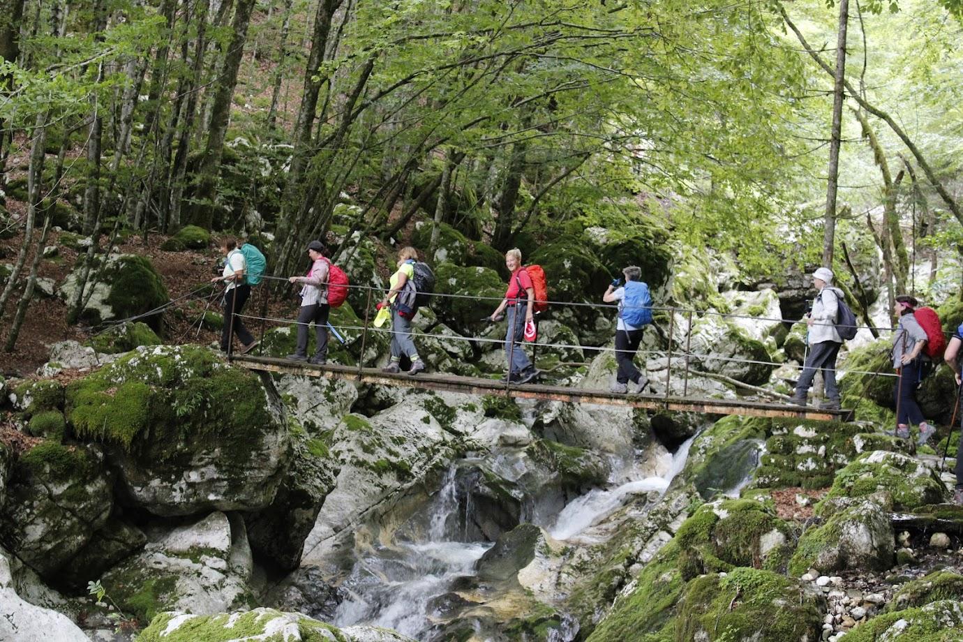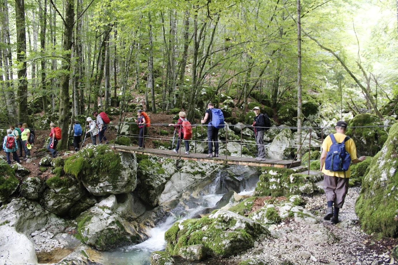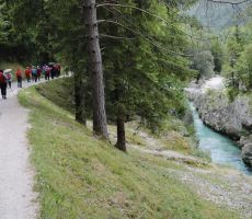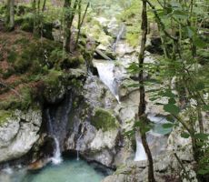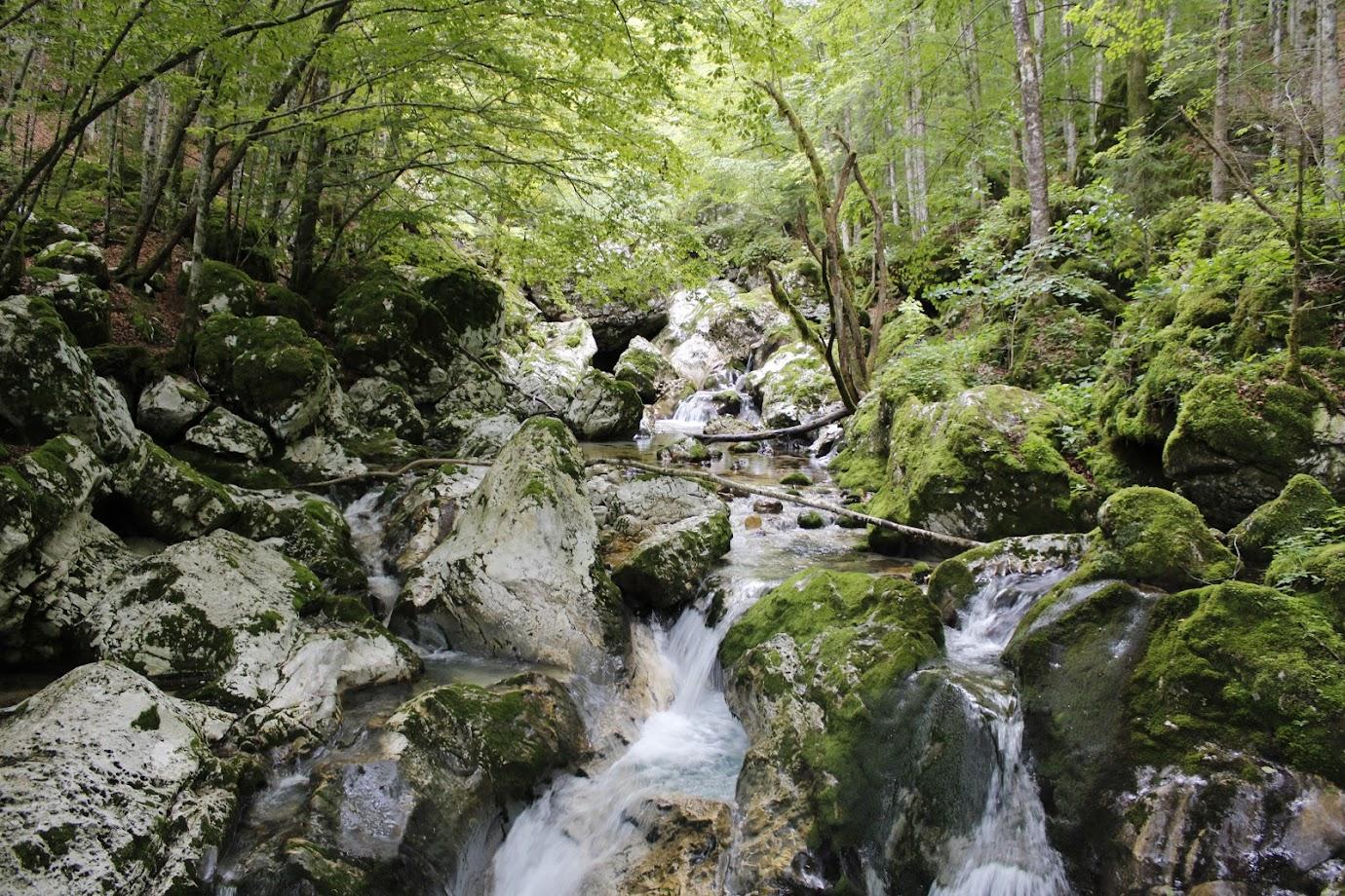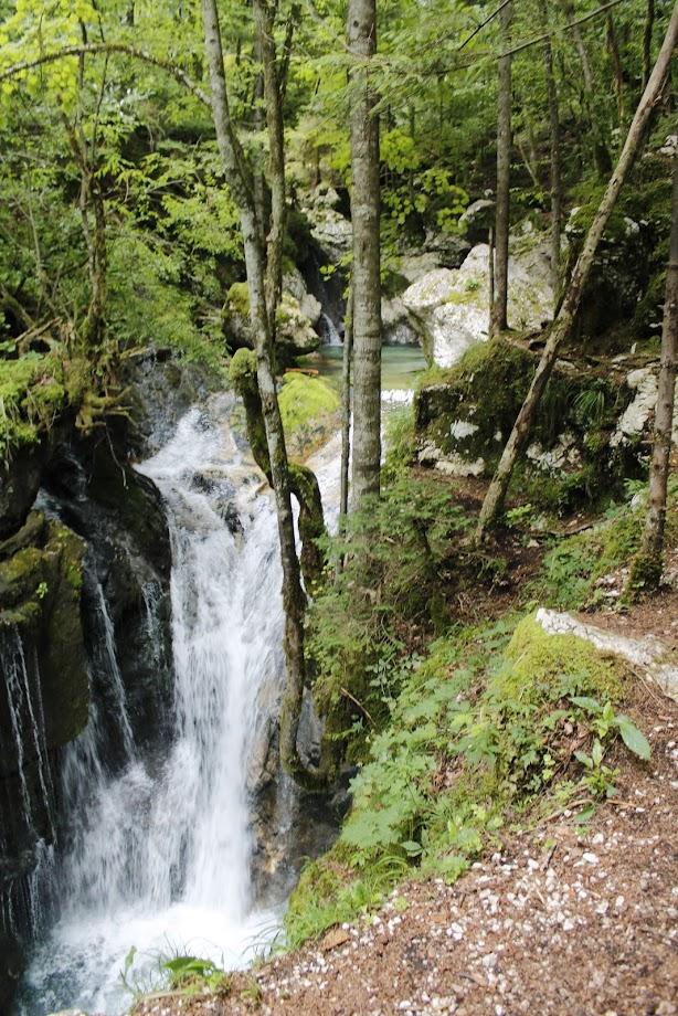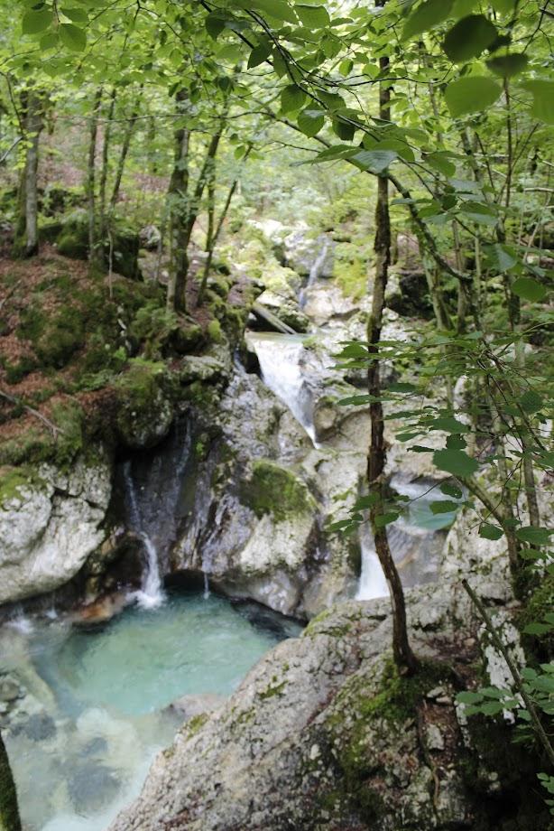 Videno med našim pohodom je bilo čudovito. Predstavljajte si gozdnato pokrajino sredi gora, polno bučeče vode, ki je v stoletjih izdolbla sto metrov dolga in do deset metrov globoka korita. Voda je čista, zelenkasto modre barve in pozorna vse do dna. Slapiči in slapovi se izmenjujejo, občasno se vodni tok razširi v zelene tolmune. Prekrasno! In naj bi bilo energija ob potoku Šumnik in Lepenca celo zdravilna. Mogoče je res, toda mi smo hiteli naprej ob toku navzgor in nato na drugi strani potoka Lepence navzdol proti našemu izhodišču.