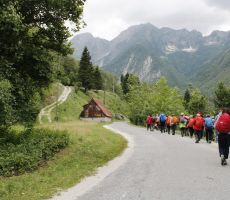 Ponovno smo se vkrcali v avtobus in se napotili proti Lepeni. Ovinkov ni bilo ne konca in ne kraja. Kar naprej smo se, sedeč na sedežih, nagibali levo ali desno. Pa tudi to se je končalo. Malo pred deveto uro smo bili na parkirišču v bližini vhoda v dolino Lepene.