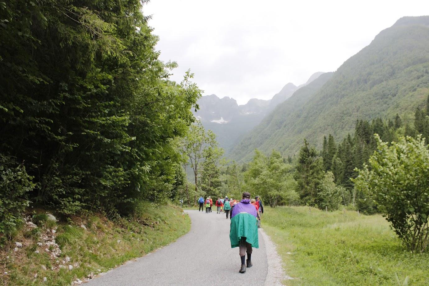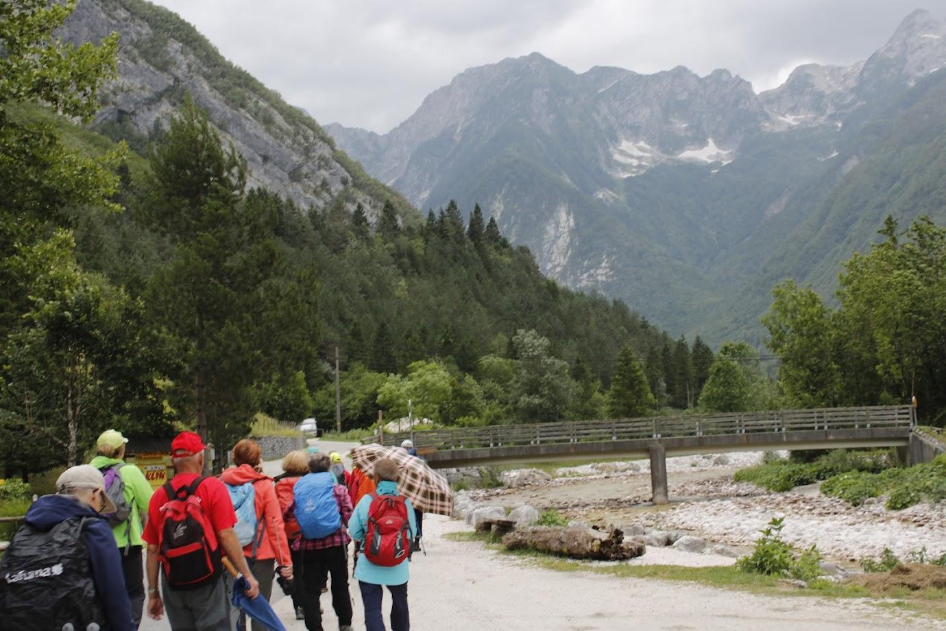 Iz Ljubljane smo proti dolini Lepene krenili z mešanimi občutki. Komaj je avtobus speljal, so se na steklenih površinah pojavile prve debele dežne kaplje. Bo, ne bo, mogoče pa le ne bo in podobne misli so verjetno begale v glavah večine udeležencev izleta. So pa nekatere udeleženke bile odločene, da bomo imeli srečo in ne bo dežja. Počasi smo se dobre volje nalezli vsi in se sprijaznili, da nismo iz »cukra«.