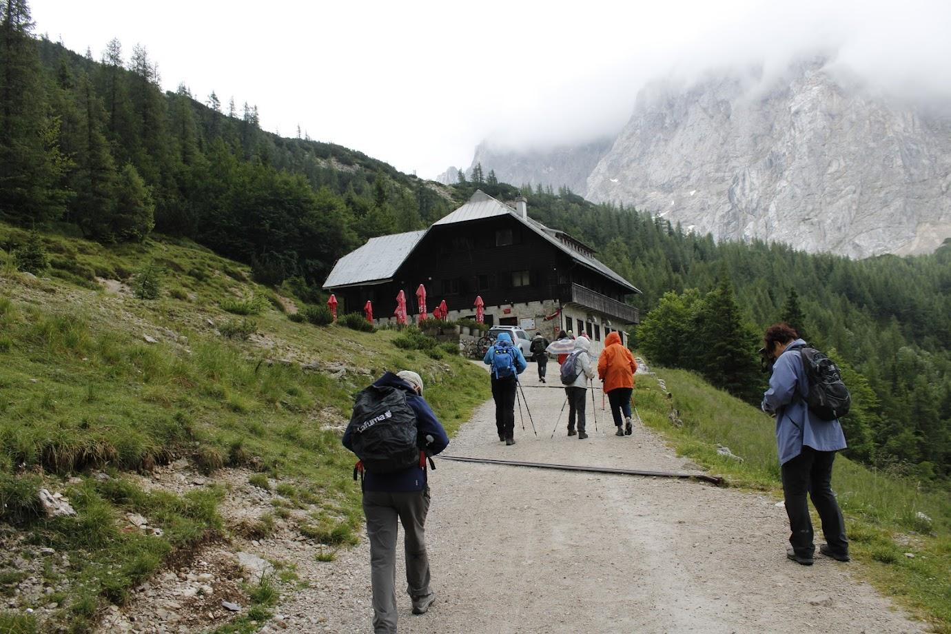 Pot preko Logatca in dalje skozi Idrijo ter naprej skozi Tolmin do Kobarida je minila ali v umirjenem klepetu ali med dremanjem. V Kobaridu nas je pričakalo podobno vreme, kot je bilo v Ljubljani. Lokalni vodnik PZS, Jože Kodermac, nas je sprejel z nasmehom in vprašanjem: »A ste nam pripeljali dež?!« ter nas povabil na jutranjo kavo. Pohodniki smo se razdelili na dve skupini in zasedli prosta mesta na terasi dveh lokalov, ki so že bili odprti. Jutranja kava se je prilegla in vrnila dobro voljo. Oblaki so bili videti manj sivi in, kot da se nas je nebo usmililo, pričel je pihati veter. Jože je bil dobre bolje. Dejal je, da je to dobro. Veter bo pregnal dež in bomo imeli lep pohod.