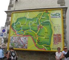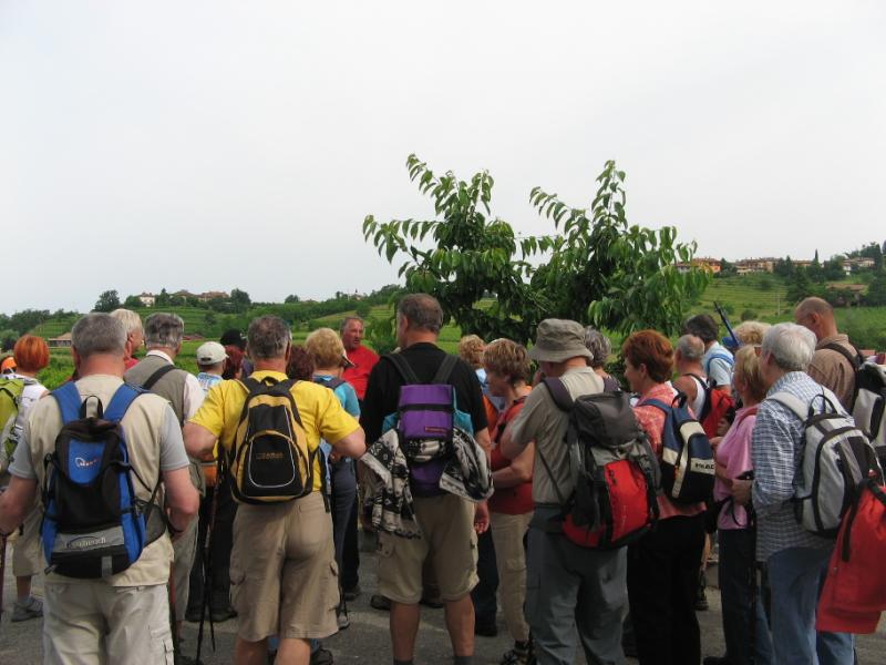 Hojo smo začeli pri češnji, ki je obeležje vsakoletnega pohoda. Zasajena je bila leta 2006 in je letos prvič obrodila. Najprej smo se povzpeli na Vrh, vzpetino s katere so se nam odprli prvi zanimivi pogledi na Brda. Od tu smo se spustili v dolino potoka Fedrih, ki mu je sledil vzpon v Medano, poznano po pesnikih Alojzu Gradniku in L. Zorzutu ter vrhunskih briških vinarjih. Pot smo nadaljevali s spustom v dolino potoka Donank, prečkali cesto Dobrovo-Vipolže in se povzpeli v Kozano, vas s cerkvenim zvonikom, ki ga je oblikoval arhitekt Jože Plečnik. Malo pred to vasjo smo si privoščili daljši postanek na prijazni domačiji Debeljakovih, kjer so se nekateri udeleženci dodobra založili s češnjami. Po krajšem prečenju doline potoka Končar smo prispeli v Biljano, zaselek z enkratnimi razgledi na briško pokrajino - Korado, greben Sabotina, Sveto goro... Sledil je še spust v dolino potoka Reke in že smo se vrnili nazaj v Dobrovo. 13-kilometrsko traso poti smo prehodili v štirih urah.Avtobus nas je odpeljal v kraj Neblo, kjer nas je vodnikova sestra Marija prijetno presenetila z okusnim obrokom in sladicami. Nakupili smo sočne in zdrave češnje bližnjih domačink.