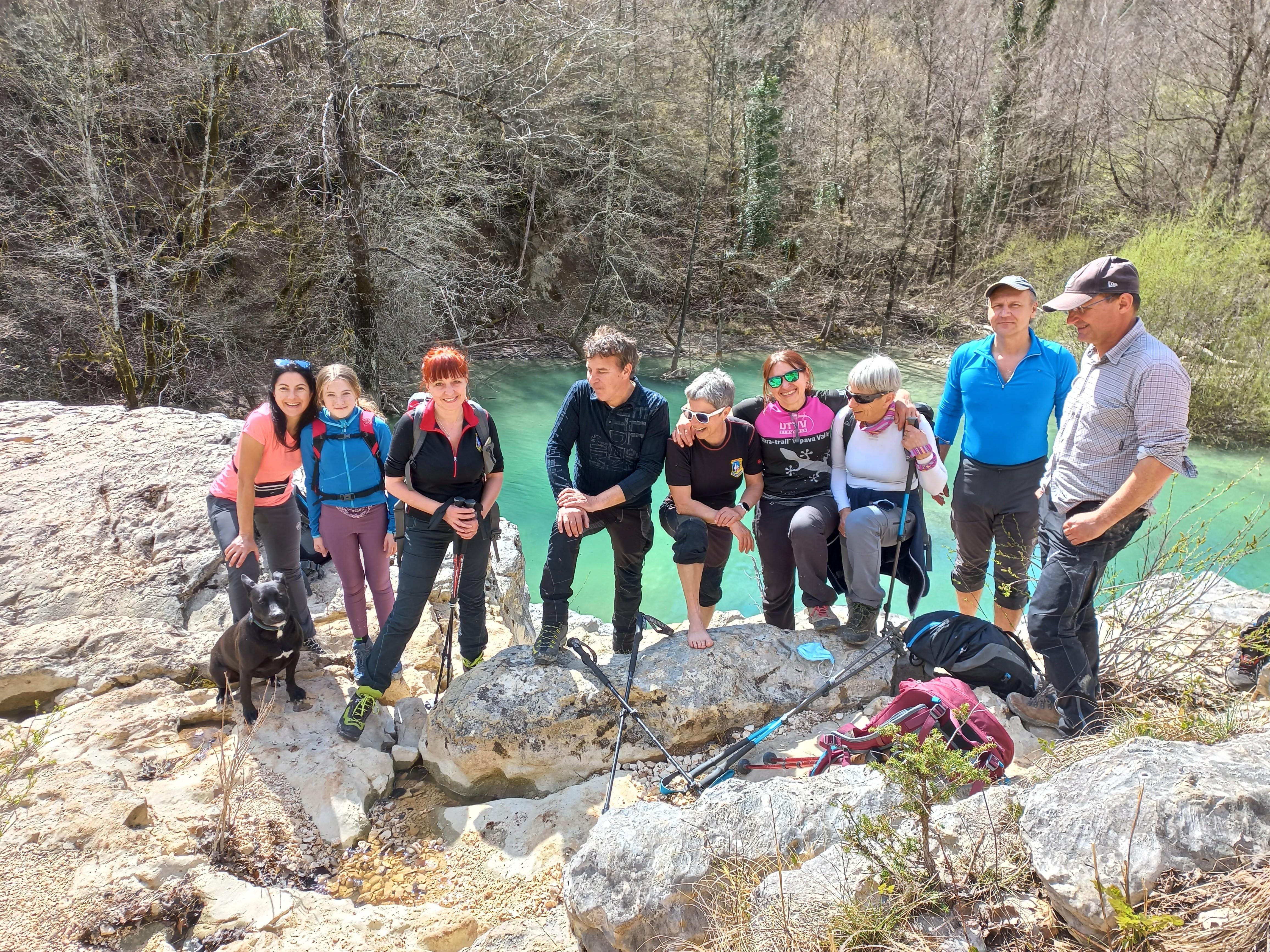 Ob uri smo krenili proti Hrvaški in v Buzetu skupaj s Koprčani popili kavico. Parkirali smo pred pivovarno Favorit (da ne bi pozabili na pivo) in začeli s pohodom. Vreme je bilo idealno, ne prevroče ne prehladno in čeprav je bil za popoldan napovedan dež, je bilo nebo brez oblačka. Na tak dan so se seveda na pot odpravili še številni drugi pohodniki. (Hrvatje, Slovenci, tujci).