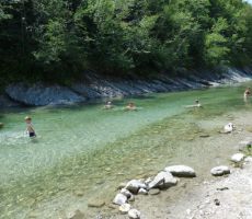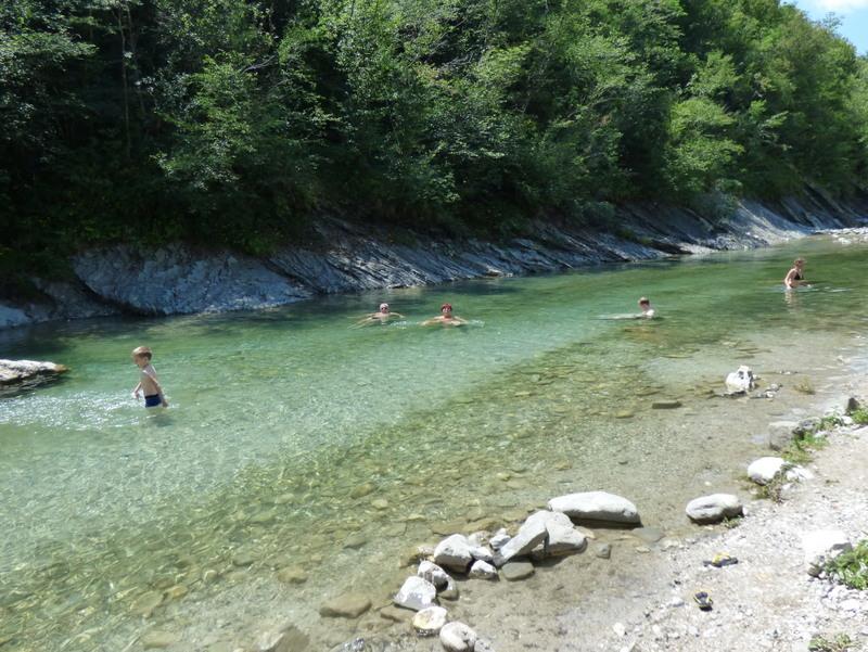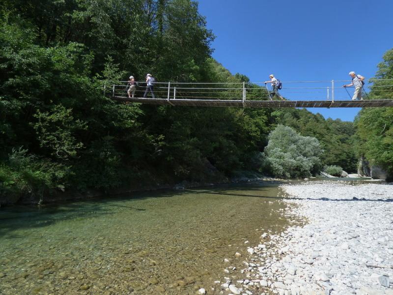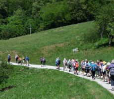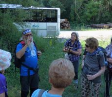 Nekaj naših fizično manj zmogljivih članov se je odločilo za krajšo pot po okolici, drugi smo se podali na pohod ob Nadiži, ob kateri smo že opazili prve kopalce. Pri brvi v Nadiških koritih nas je pričakala Joškova žena, ki nam je nekoliko razširila obzorja o teh krajih.