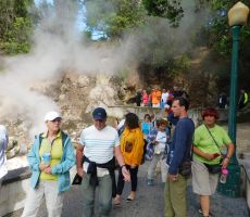 Sprehajali smo se med slapovi in vodnimi kanali, ribiškimi vasicami in klifi, obiskali velikanski vulkanski krater z več jezeri Sete Cidades, zaščiteni rezervat za vodne vrste ptičev, z razglednih točk se naužili lepot otoka, ogledali si fumarole, ki so zelo pripravne za kuhanje koruze, obiskali enega najlepših botaničnih parkov Evrope Terra Nostro, s številnimi rastlinami iz vsega sveta, plantaže čaja, muzej in nasad tobaka, plantaže ananasa. Kopali smo se v lavinem bazenu, lagunah, Atlantiku in popularnih zdravilnih termalnih vrelcih. Opazovali nevarno valovanje Atlantika in še bolj nevarne vrste meduz.