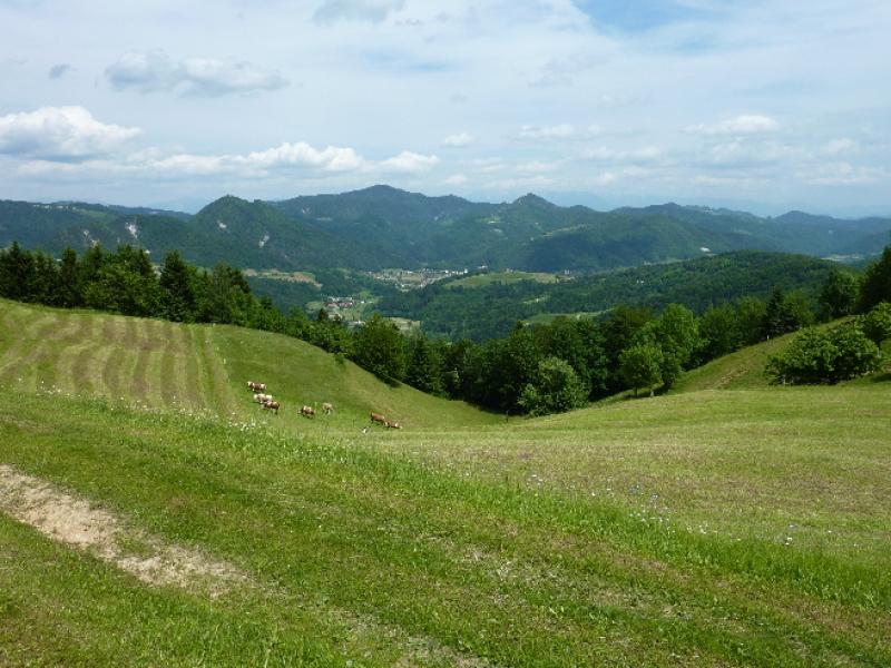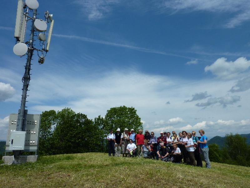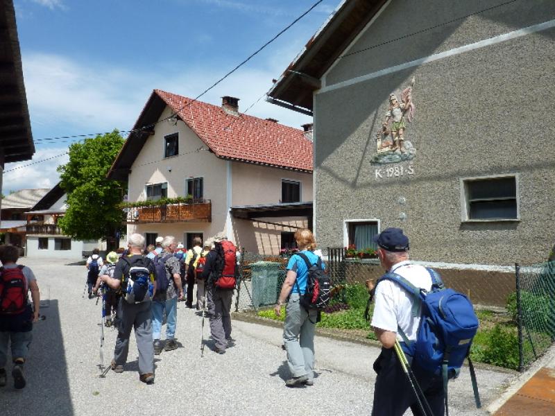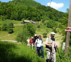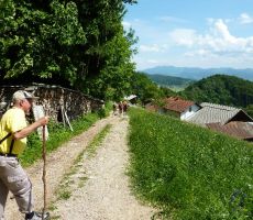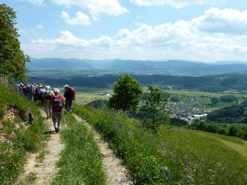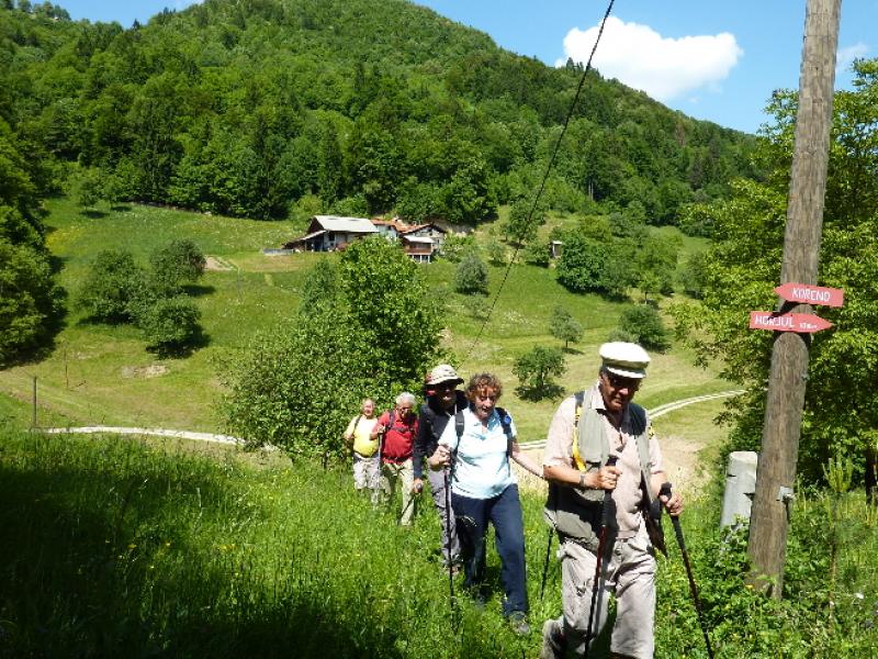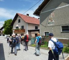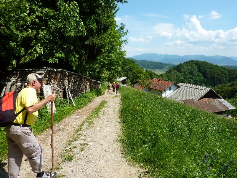 V lepem spomladanskem jutru smo prijetno razpoloženi krenili na pot in kmalu prečkali potok Mala voda, kjer smo vrgli pogled na staro žago in zasebno malo elektrarno in že smo vstopili v zavetje gozda. Po dobrih 30 minutah hoje smo prispeli v vas Briše, kjer se nam je ponudil razgled na okoliške griče, na katerih kraljujejo male cerkvice. Osamljene velike kmetije z napisi vabijo popotnike na odprta vrata kmečkega turizma. Pot smo nadaljevali po gozdnih in travnatih poteh s preprogami pisanega travniškega cvetja. Spomnil sem se enega od naših društvenih izletov pred mnogimi leti, ko nam je v teh krajih prišel nasproti, v spremstvu dveh znancev, sedaj že pokojni član društva Dominik, ki je tiste čase raje hodil sam, kot v velikih skupinah. Bili smo presenečeni, tako on kot mi.