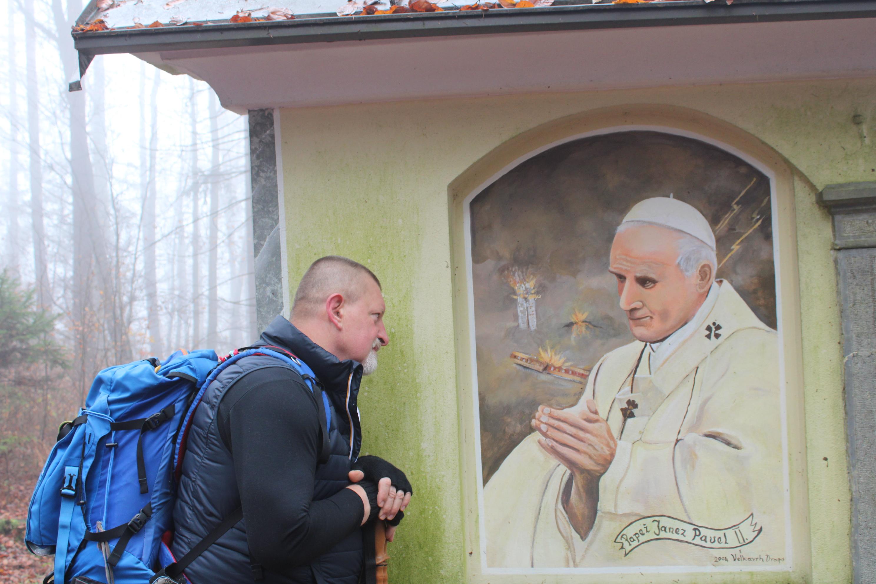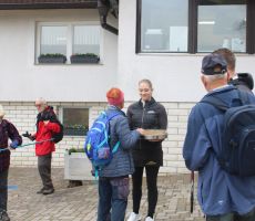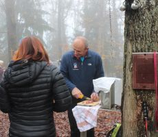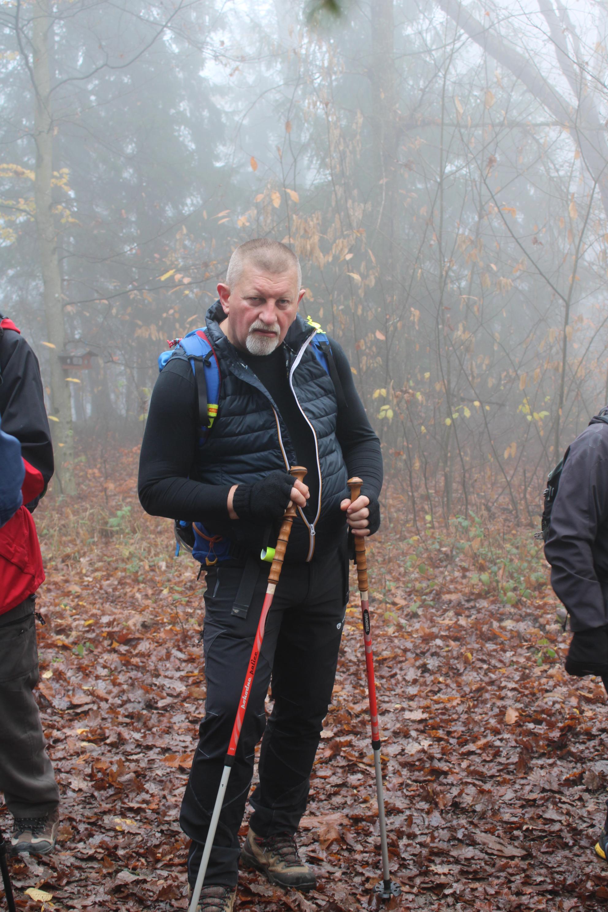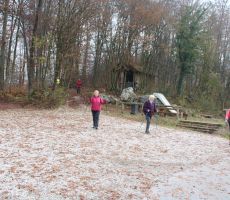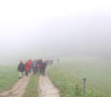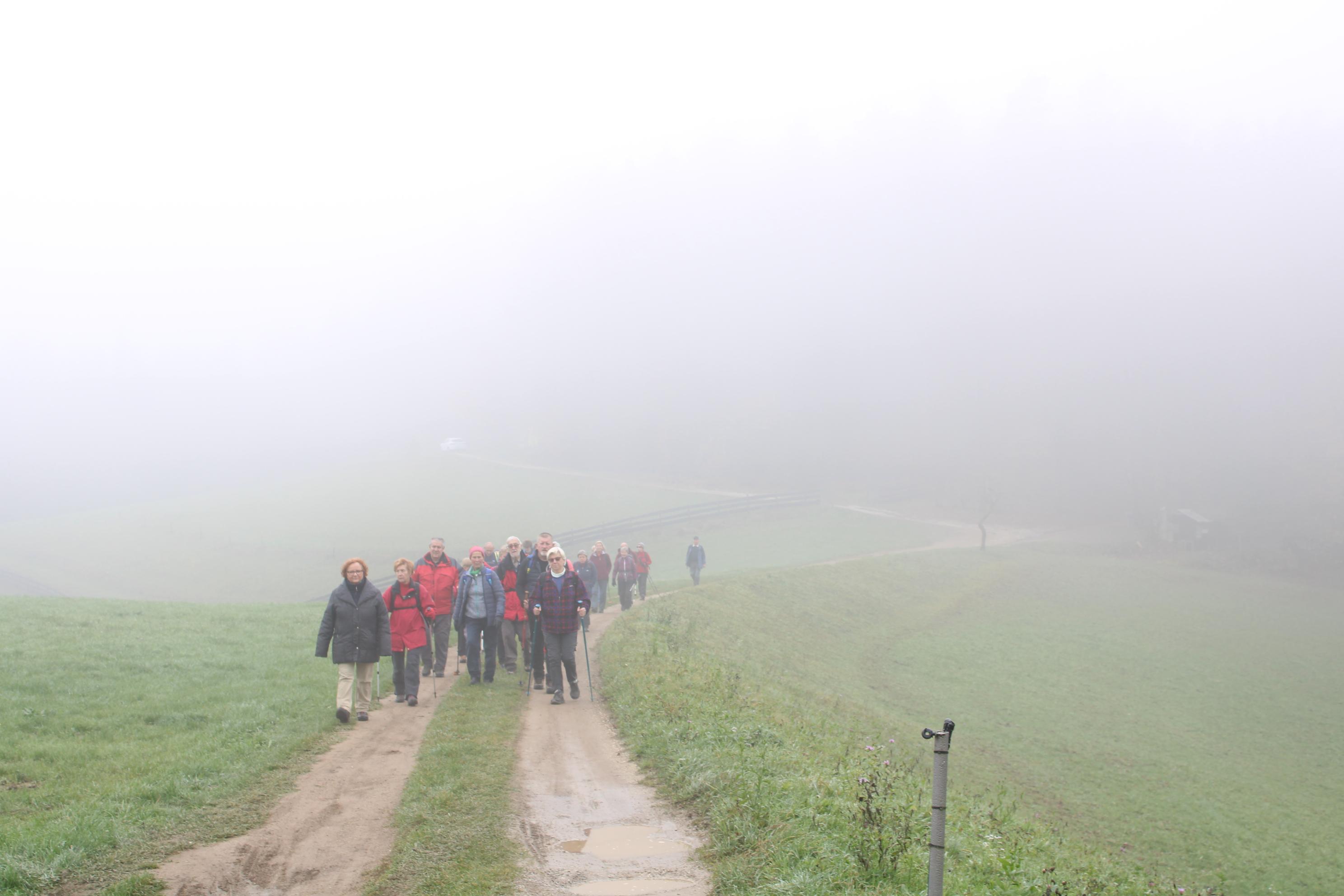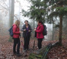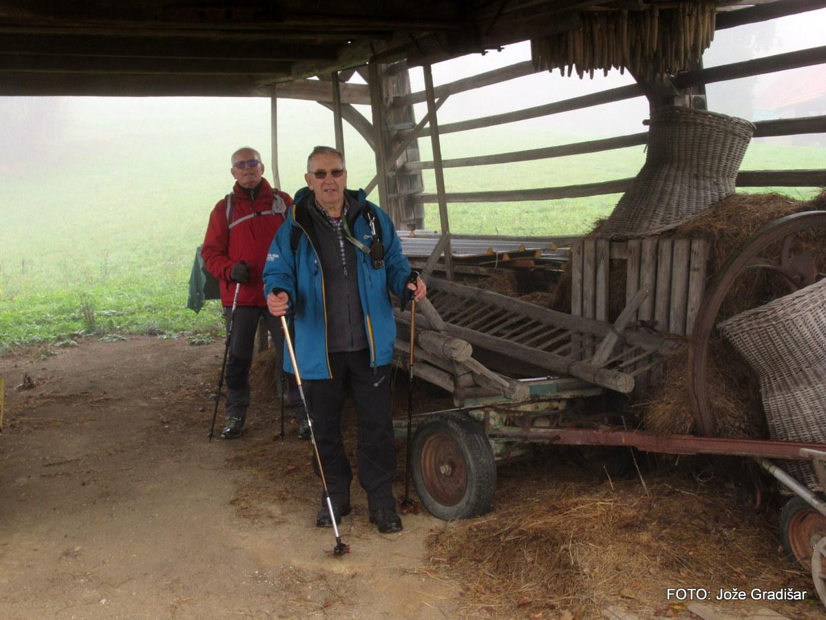 Ostali člani smo svoj pohod na hrib Ajdovščina pričeli v Zaborštu. Sprva je bila pot malo bolj strma, meglena, vendar vseeno zanimiva, saj so kljub novembru ob poti še vztrajale gobice, zadnje letošnje cvetlice in še nekateri zlato obarvani listavci. Kaj kmalu se je pot položila in postala lahka pohodna pot. Vodila nas je mimo obeležij NOB, del poti pa tudi po Poti revolucionarnih tradicij. Do vrha Ajdovščine, ki meri v višino borih 465 m smo prispeli v slabih štiridesetih minutah. Pot, do z gozdom poraščenega vrha, je vseskozi potekala v mešanem gozdu, obdanemu z meglo, ki pa v dobri družbi ni predstavljala nikakršne ovire.