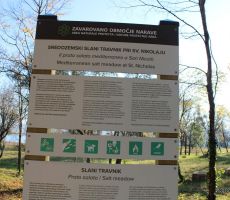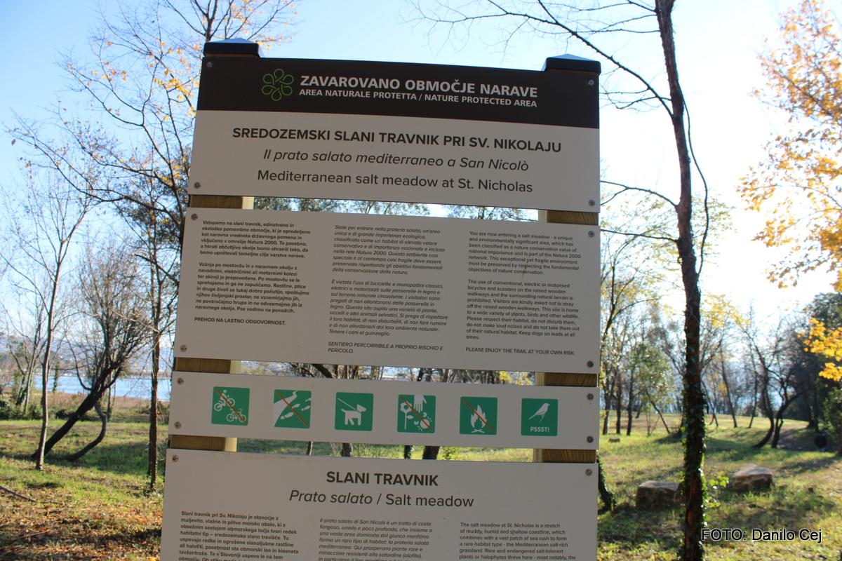 Po zelo sproščujočem sprehodu po gaju, nas je pot pripeljala do slanega travnika, ki je edini te vrste v Sloveniji. To je obrežni močvirski ekosistem ekološke vrednosti. Sprehodili smo se po urejeni, dvignjeni, leseni pešpoti. Ob poti so zanimive informativne table s podatki o rastlinah in živalih. Table nas med drugim seznanijo o dveh rastlinah, ki rasteta samo na tem območju in nikjer drugje v Sloveniji. To sta obmorski lan in lasnata tavžentroža. Spomladi najprej vzcveti prva, malo kasneje pa še druga.
