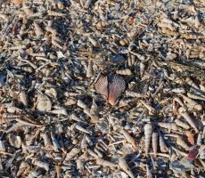 Pot smo nadaljevali do školjčišča – pokopališča školjk. Tu je res veliko odmrlih školjk: vretenc, pelikanovh stopalc..... Morje jih je v tako veliki količini verjetno naplavilo zaradi poglabljanja morskega dna v koprskem pristanišču za potrebe luke Koper.