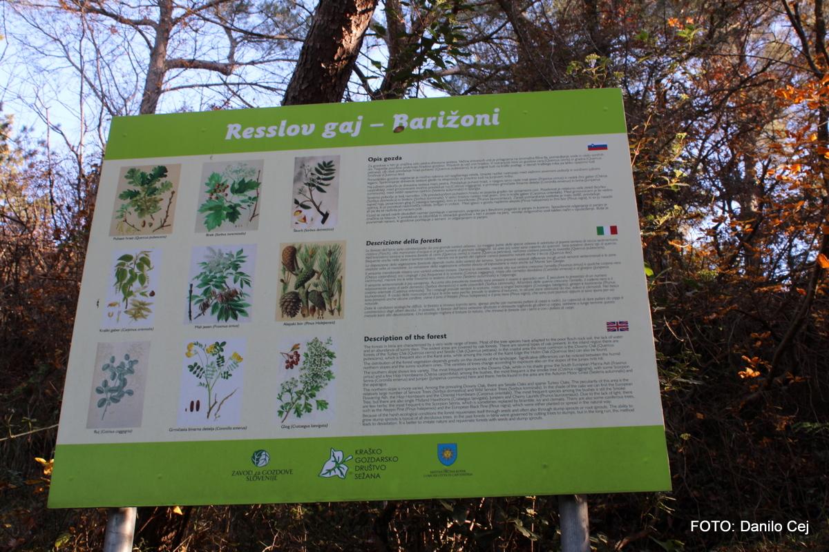 Podali smo se po krajinskem parku Debeli rtič. S hojo smo pričeli na Debelem rtiču in se med vinogradi, oljčnimi nasadi in ruji obarvani z bakreno rdečimi barvami, sprehodili do Resslovega gaja. Resslov gaj je gozdna učna pot na zahodnem delu Ankaranskega polotoka. Posejan je s hrasti in značilnim primorskim grmovjem, rujem. Gaj je dobil ime po svetovno znanem češkem izumitelju ladijskega vijaka Josefu Resslu*, ki je bil po poklicu gozdar. Na južni strani Resslovega gaja je tudi največji oljčnik v slovenski Istri.
