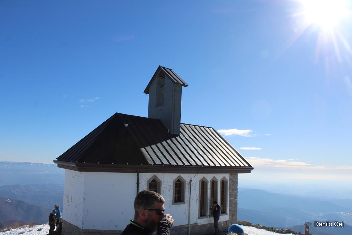 Čaka nas še zadnji del vzpona proti grebenu in po mejnemu grebenu med Slovenijo in Italijo se povzpnemo vse do vrha. Z vrha je lep razgled na Kobariški oz. Breginjski Stol za katerim levo od njega opazimo Karnijske Alpe in del zahodnih Julijcev, kjer kraljuje skupina Kanina. Na vzhodno stran pa opazimo Krn in greben Krnčice za katerim opazimo vrh Triglava. Proti jugovzhodu opazimo Golake, proti jugu pa Jadransko morje, kjer se lepo vidi pristanišče v Trstu. Na vrhu stoji manjša cerkev/kapela.
