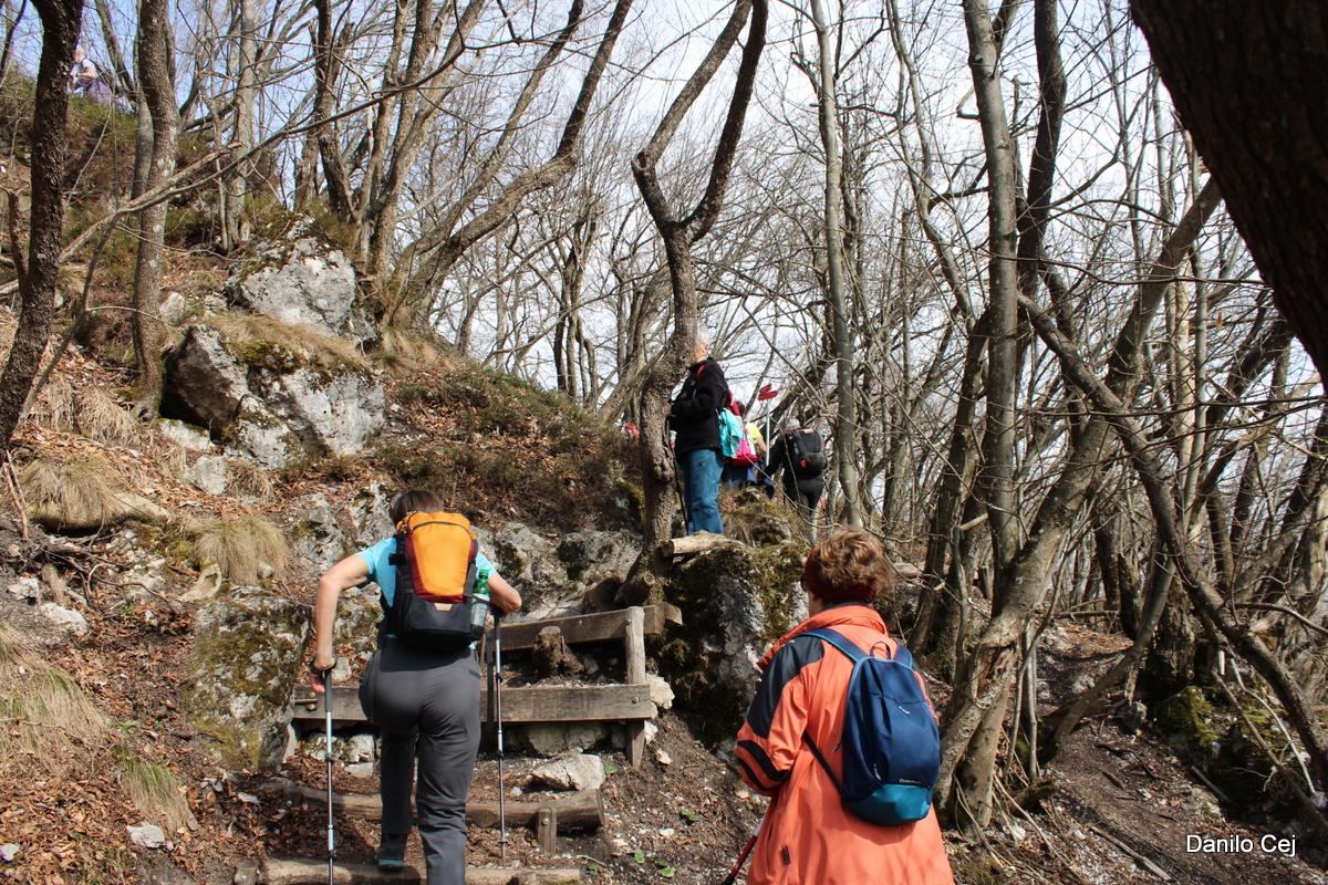 Na Jetrbenk smo se podali po poti roparskih vitezov. Pot je dobila ime po roparskih vitezih Hertenberg, ki so prebivali v grajski utrdbi pod vznožjem hriba Jeterbenk. Le-ti so nas ves čas spremljali in kazali smer na vrh. Vso pot nas je spremljalo tudi pomladno cvetje - od jetrnikov, pljučnikov, trobentic, vijolic, žafranov in na južnih legah celo blagajan. Poleg razigranega ptičjega žvrgolenja, nas je ob robu poti pozdravil čisto pravi največji kuščar v naših krajih – živozeleni zelenec. Najprej si nas je mirno ogledal, nato pa se je z največjo možno hitrostjo umaknil v grmovje. Pohodna pot na Jetrbenk je urejena z informativnimi tablami, ki pohodnike informirajo o rastlinstvu in živalstvu teh gozdov.