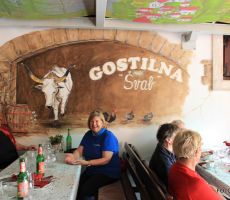 Po dveh kilometrih in pol smo prispeli do avtobusa, kjer nas je pričakala naša druga skupina. Odpeljali smo preko hrvaške meje v slovensko vas Hrastovlje na kosilo v gostilno Švab. Ob dobri hrani, pijači in dobri družbi je ura hitro minila in odpravili smo se domov.