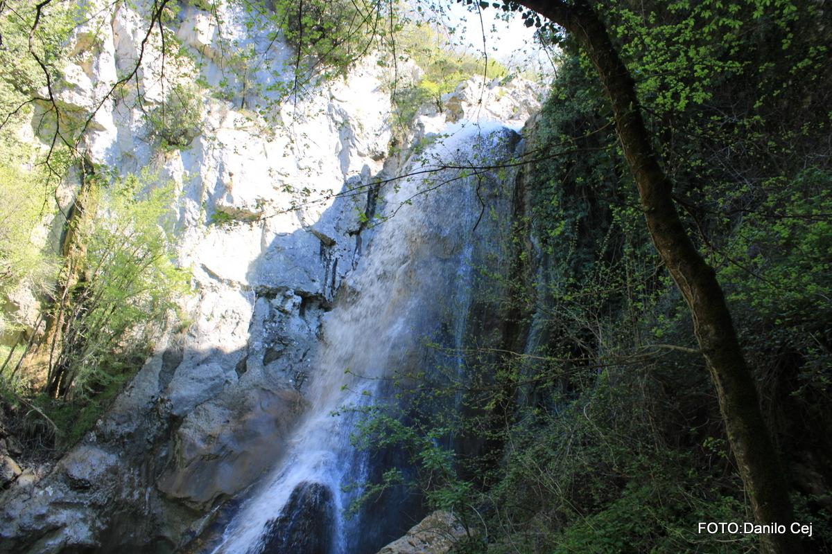 Pot sedmih slapov zavije v kanjon rečice Drage, kjer je reka izoblikovala jezerca, brzice, slapove. Kar hitro smo prišli do prvega slapu Zagon. Pot je v prvem delu zavarovana in zaradi spolzkih kamnov, previdnost ni bila odveč. S previdnimi koraki smo se povzpeli do drugega slapu, imenovanega Bačva. Pot je nadalje potekala s prvimi vzponi ob vrvnem varovanju preko plezališča. Nadaljevali smo mimo modro-zelenega jezera do tretjega slapu Vela peč. Da smo dosegli planoto, so nam bile v pomoč vrvi in kovinski stopi. Na vrhu je bil lep razgled na Buzet. Ob rahlem spustu smo prečili rečico in ob njej nadaljevali pot do četrtega slapu Mala Peč, ki pada v zeleno jezerce pod spodmolom. Po nekaj korakih smo zapustili reko Drago, se povzpeli po kolovozih in poti, kjer so nekoč potekale cesarske poti med Reko, Dunajem in Pulo. Na to spominja zelo dobro ohranjen Napoleonov most iz začetka 19. stoletja. Pravijo mu tudi francoski most. Mimo zaselka Kuhari smo se spustili do petega slapu Kotli. Ta je zelo slikovit in meri v višino 12 m in širino 7 m. Tu je ohranjen tudi star mlin, ki ponuja pogled na okrogla jezerca in slapove. Le-ti so primerljivi s turškimi koriti Pamukkale.