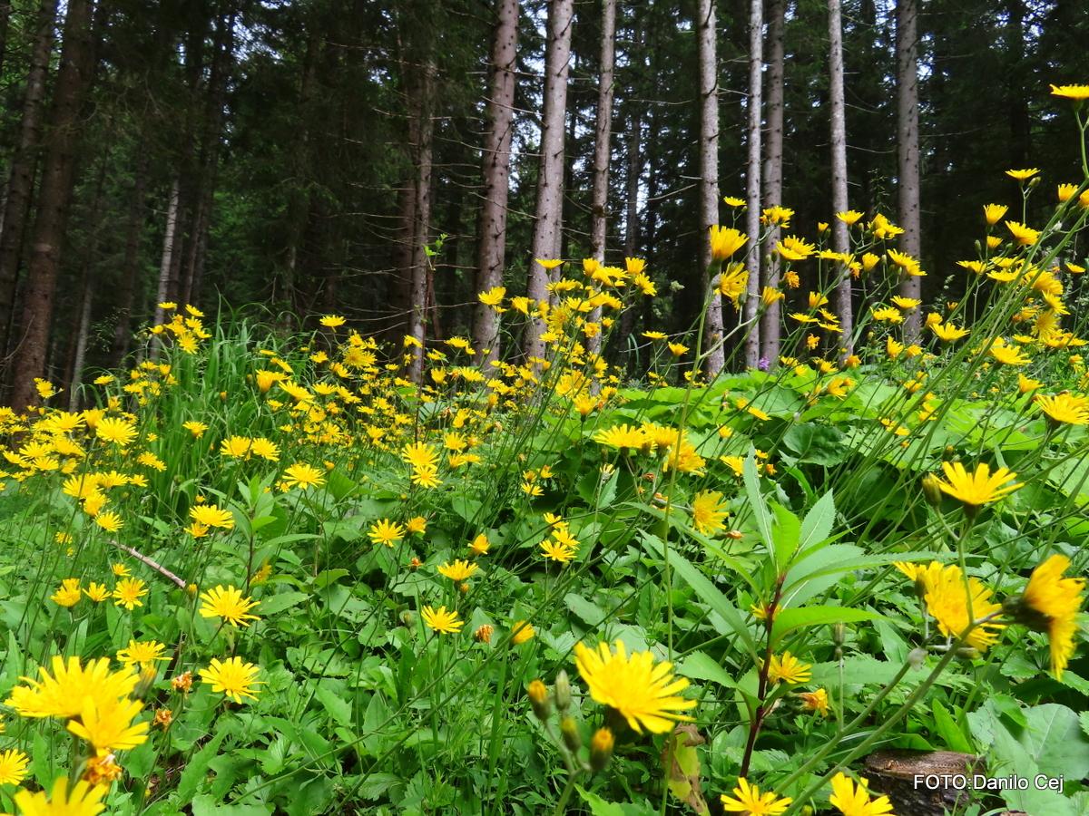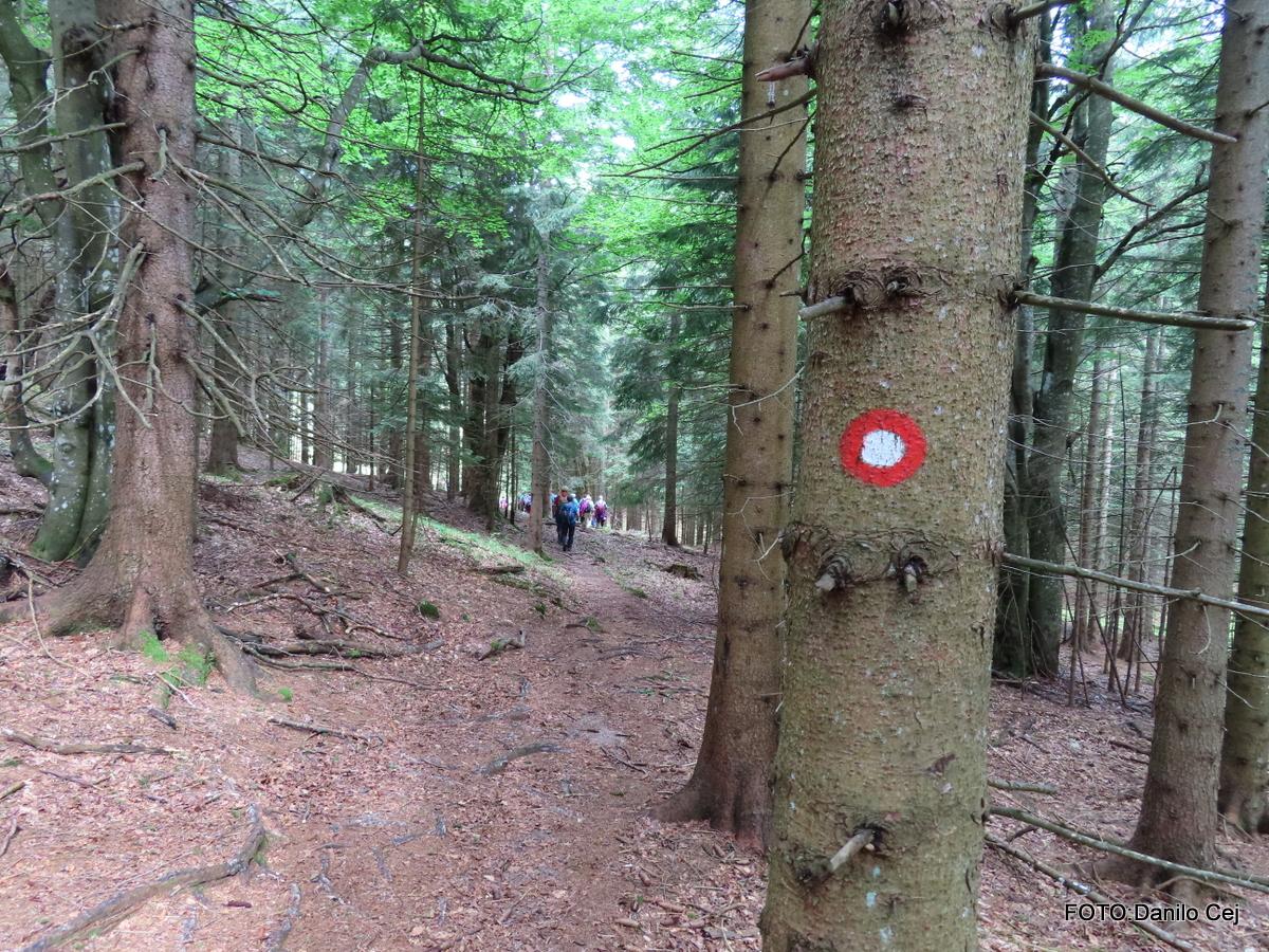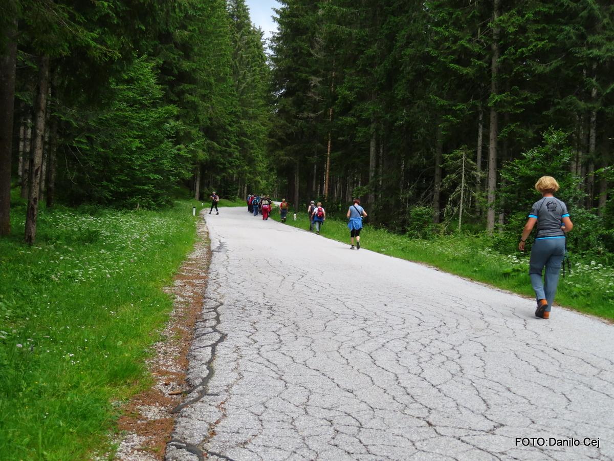 Po približno uri hoje po makadamski cesti in nadalje po gozdni poti smo preko Belske planine prispeli na razgledni vrh. Vso pot so nas spremljale poletne cvetlice, govedo na paši, prve gobice in prijeten medsebojni klepet.