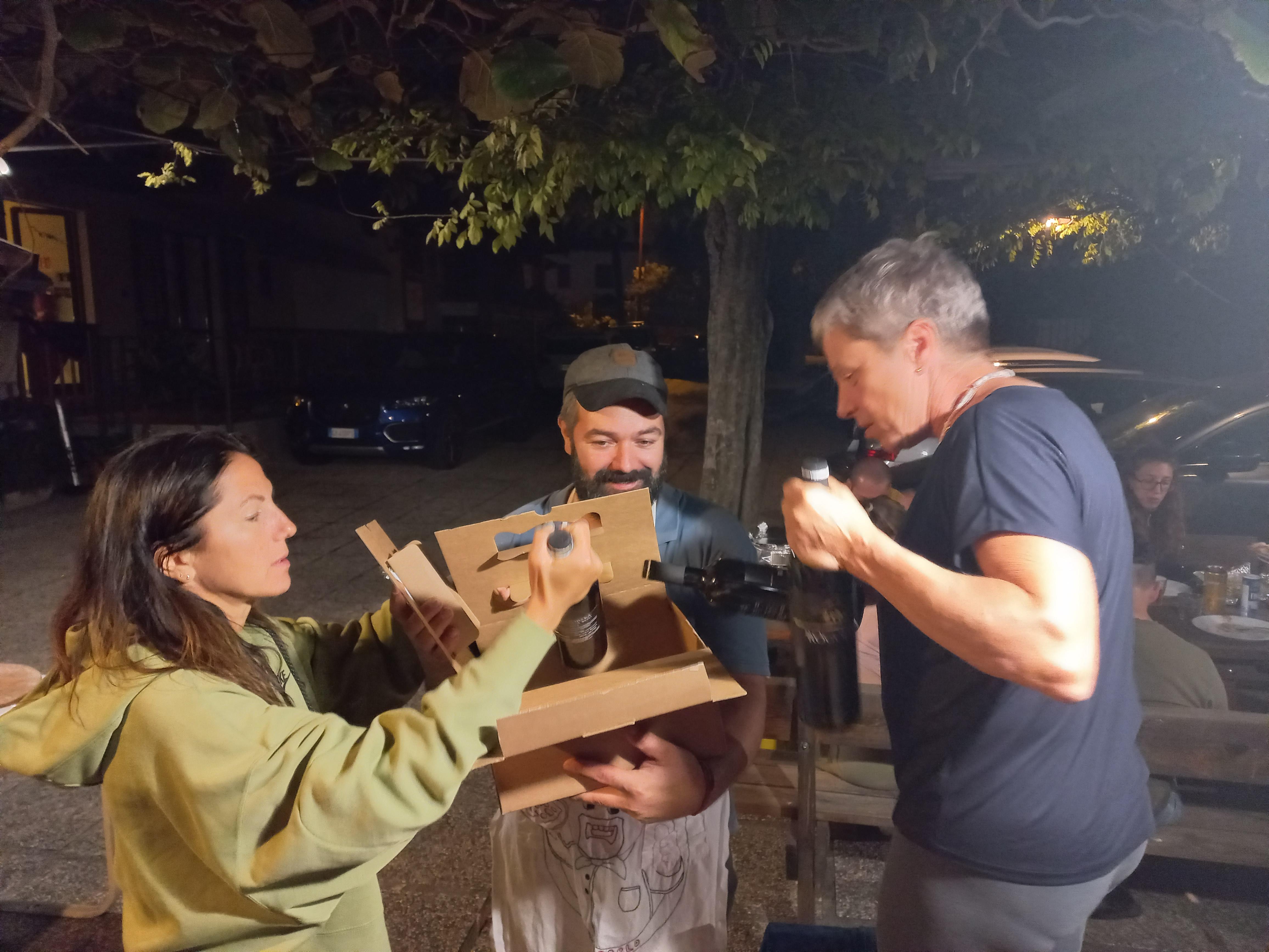 Nobel večerja: Giancarlo s pomočniki nam pripravi odlične pizze, ki jih zalivamo z domačim vinom. Odlično!