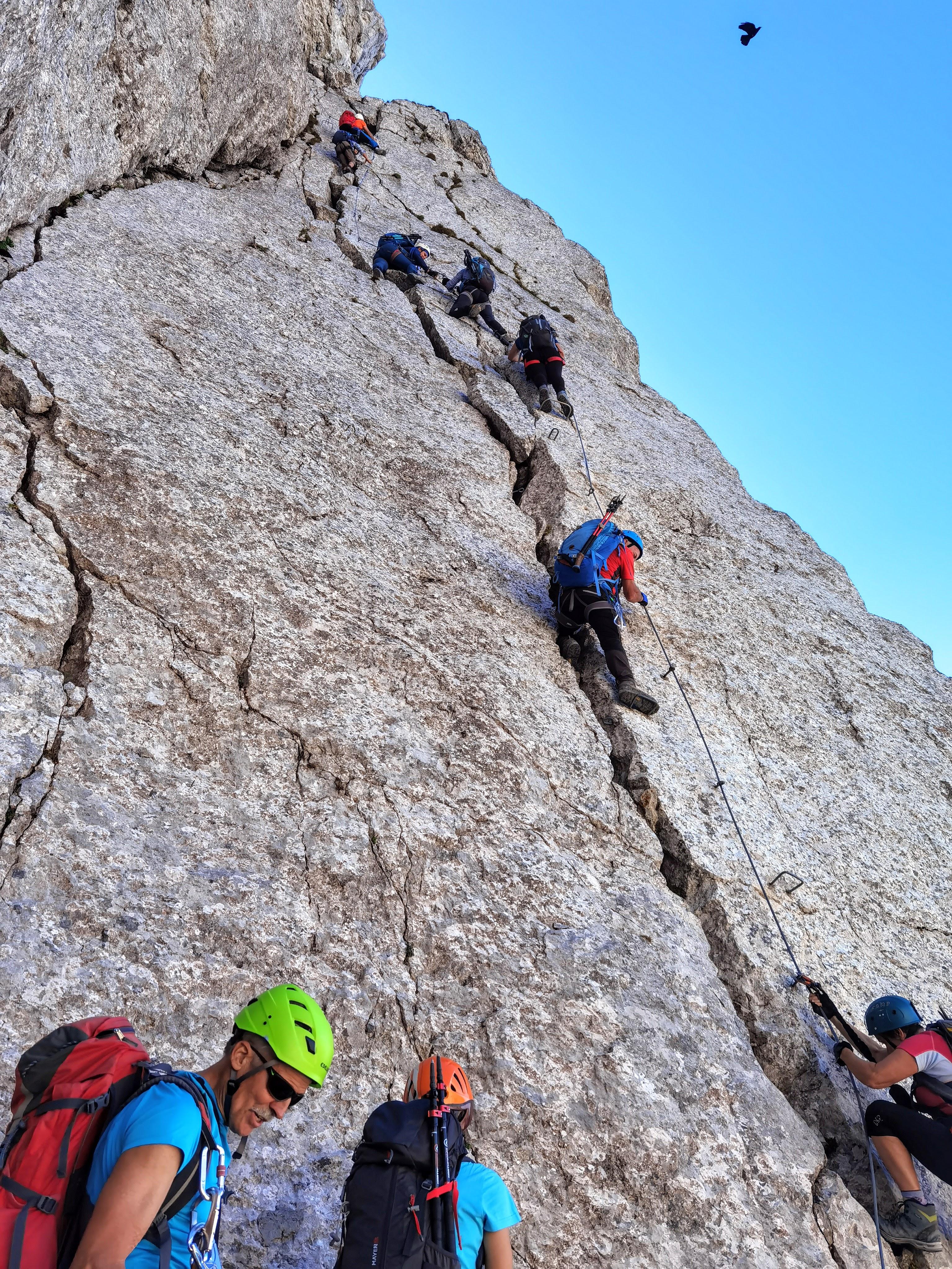 Ferata delle Taccole se je izkazala za precej zahtevno ( z Ingrid sva v maju na ogledni turi našle vstop, vendar zaradi snega nisva mogli po njej). Vse ferate , ki smo jih preplezali v kasnejših dneh, so bile precej lažje. Vsekakor drži, da je bila »na Plajbo«.