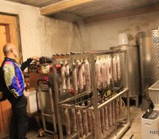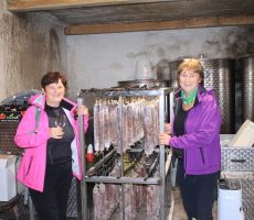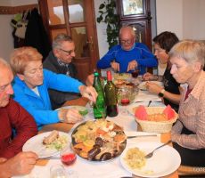 Že na dvorišču kmetije so se vile omamne vonjave martinovega, tega najbolj priljubljenega praznika v Sloveniji. To je praznik, ko je sv. Martin mošt spremenil v vino in je praznik preprostih stvari, kot so veselje, prijateljstvo in dobri ljudje. Poleg praznovanja nove vinske letine ima martinovo tudi svoje jedi, med katerimi so najbolj značilna pečena gos ali raca, mlinci, rdeče zelje in prav s temi dobrotami so nas postregli na kmetiji. Po dobri in obilni hrani se je seveda lepo prilegel cviček.